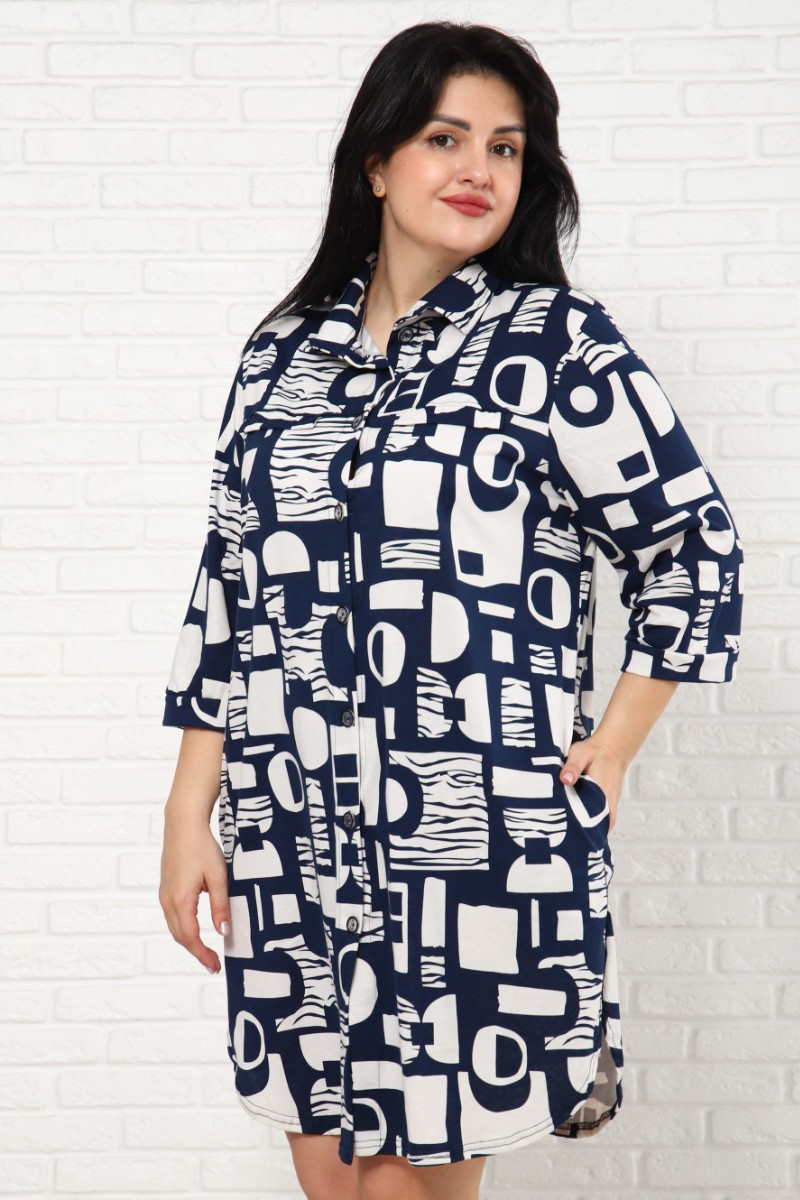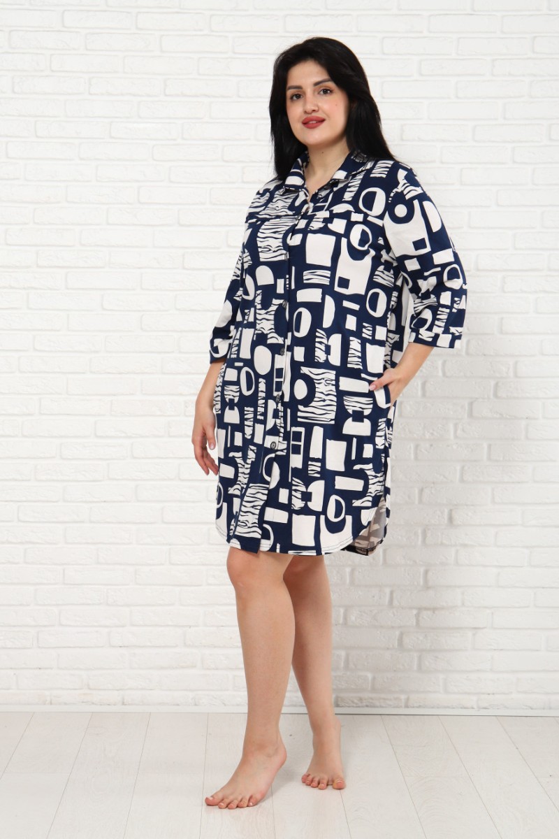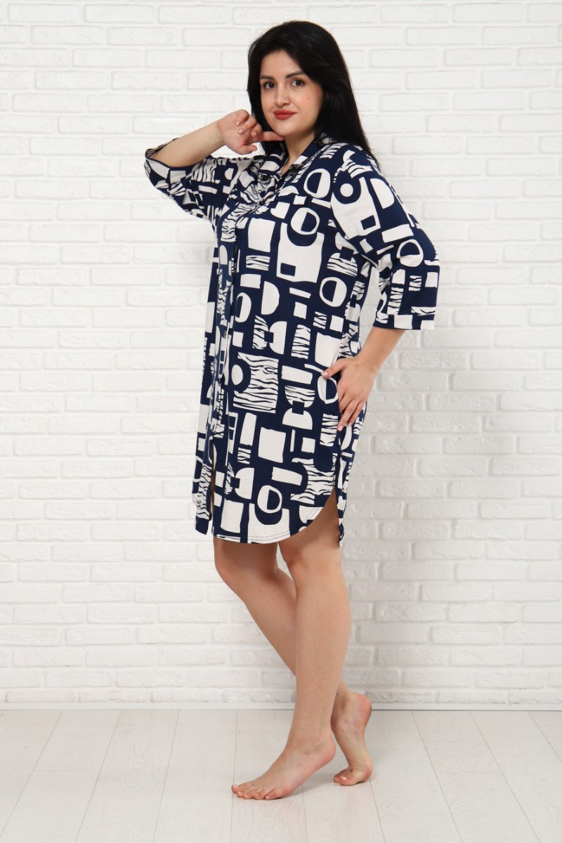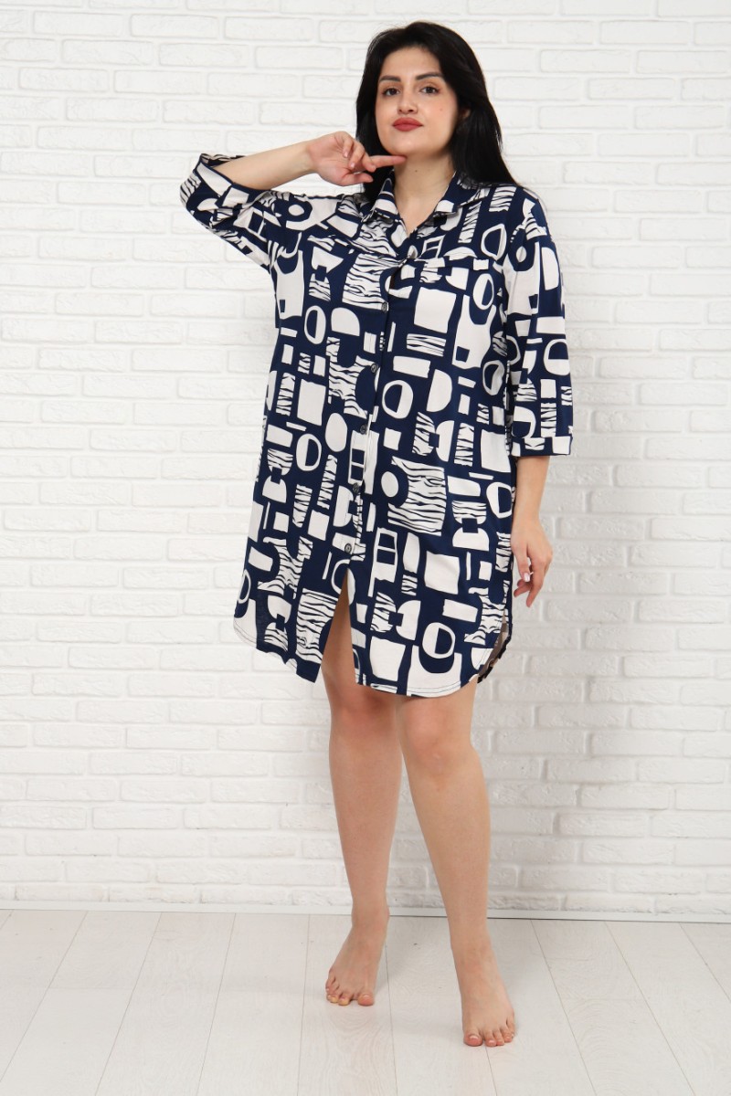 Туника женская Т-0050 кулирка (последний размер) синий-бежевый 48