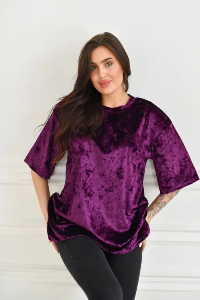 Представляем Вашему вниманию женскую велюровую футболку оверсайз. Эта велюровая футболка станет отличным дополнением гардероба. Объемная модель с классическим круглым вырезом горловины и слегка спущенными широкими рукавами обеспечит комфорт и стильный современный образ. Базовая футболка женская свободного кроя - оверсайз подходит для создания неповторимого образа. Данная модель включает в себя и большие размеры. Футболка подойдет как для вечерних выходов, прогулок по городу, так и для повседневной носки. Футболка велюровая прекрасно сочетается с различными элементами одежды, создавая уникальные сочетания. Изделие выполнено из мягкого велюра, что придает ему уютный вид. Это идеальный выбор для тех, кто ценит комфорт и стиль одновременно.