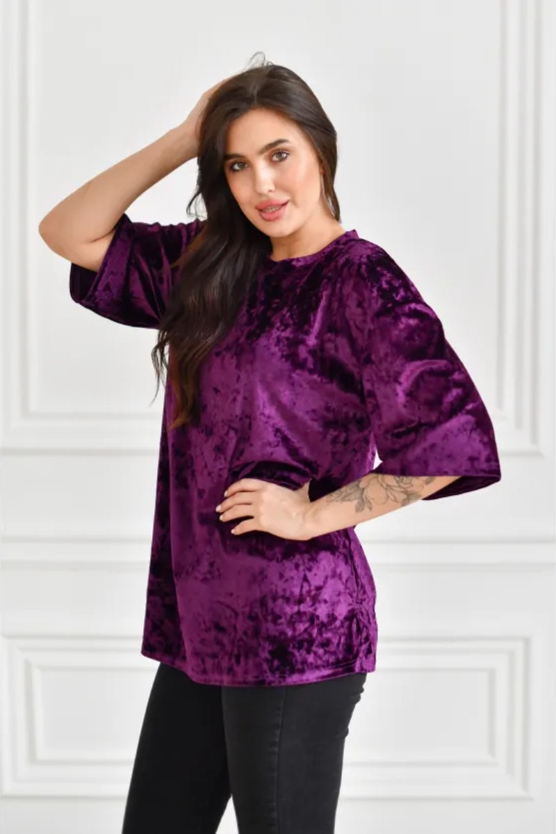 Футболка женская "Велюр" 1368-6 велюр (последний размер) фиолетовый 54