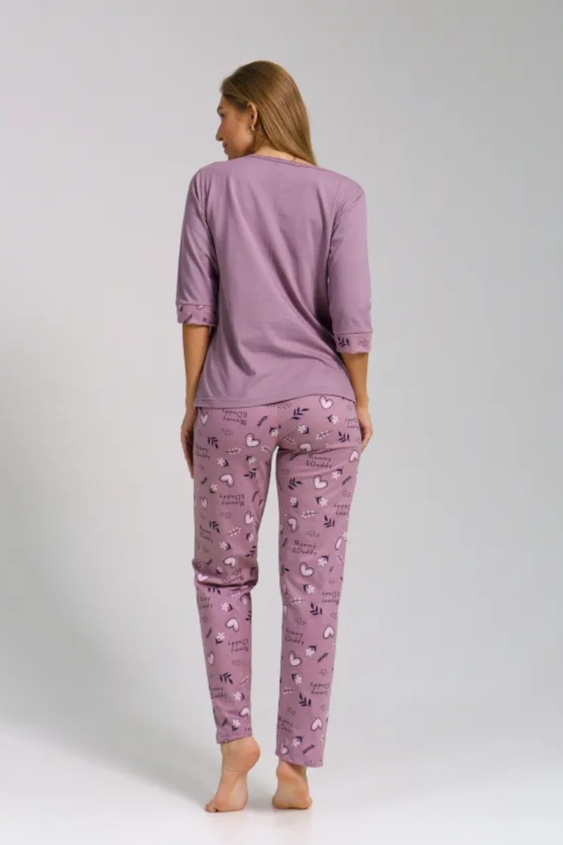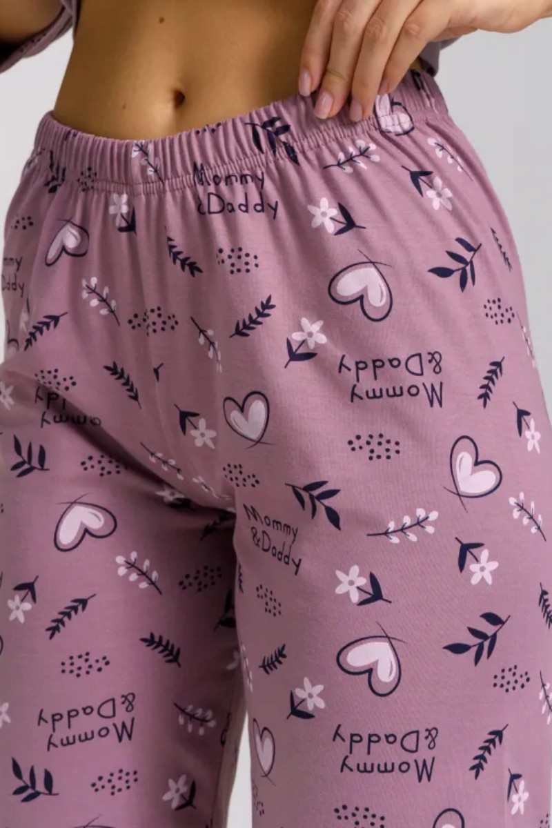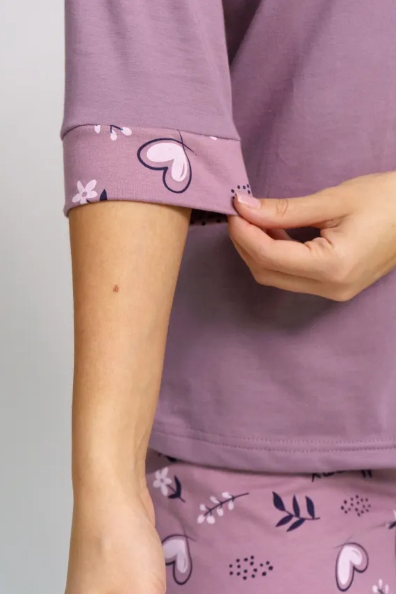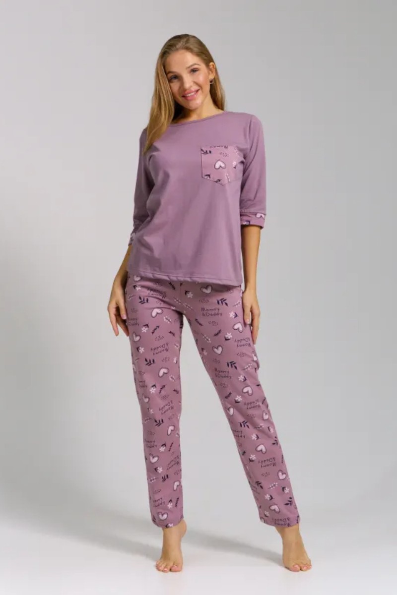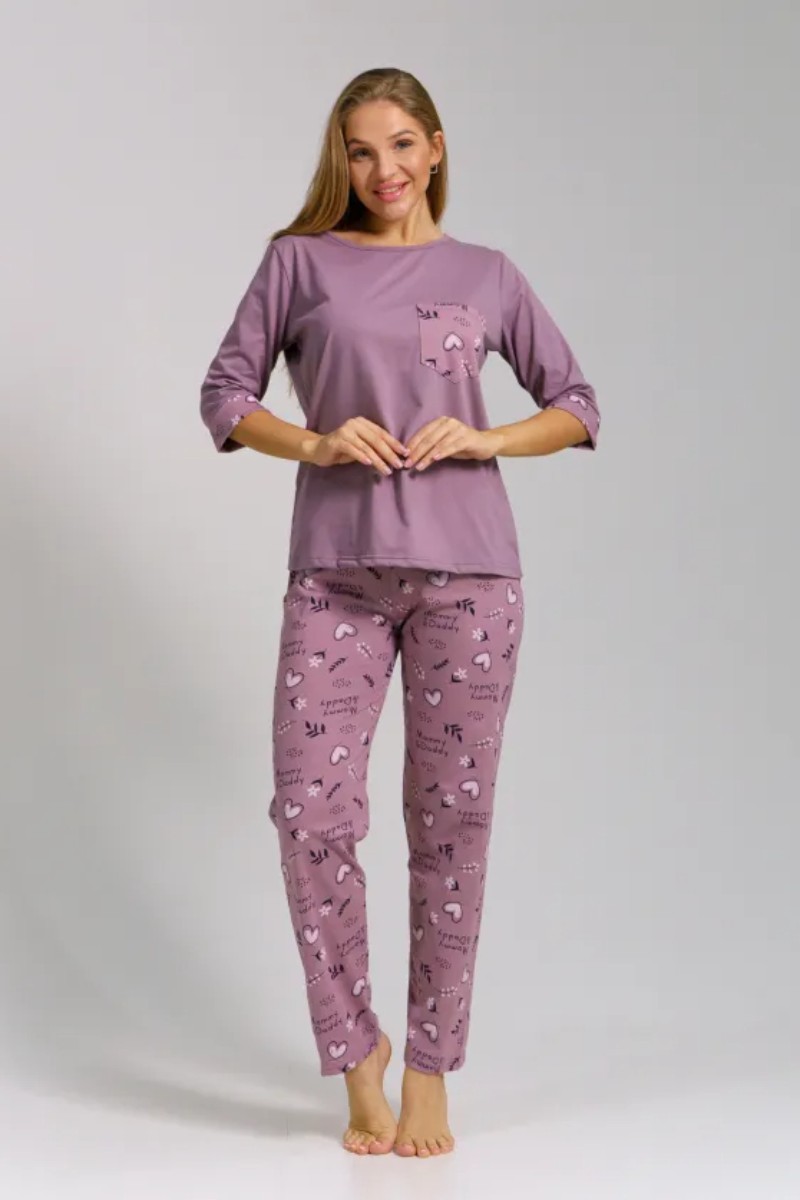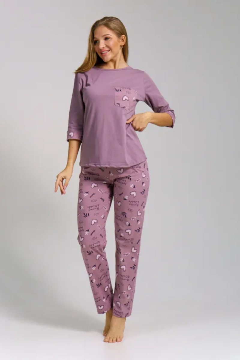Представляем Вашему вниманию легкую женскую пижаму из кулирки - 100% натурального, дышащего хлопка. Состоит из свободной кофты с рукавом 3/4 и свободными прямого кроя брюками. Комплект имеет элегантную расцветку, которая интересно смотрится и поднимает настроение. Изделие красиво сидит на фигуре и подчеркивает её достоинства. В ней Ваш сон будет максимально приятным и расслабляющим.