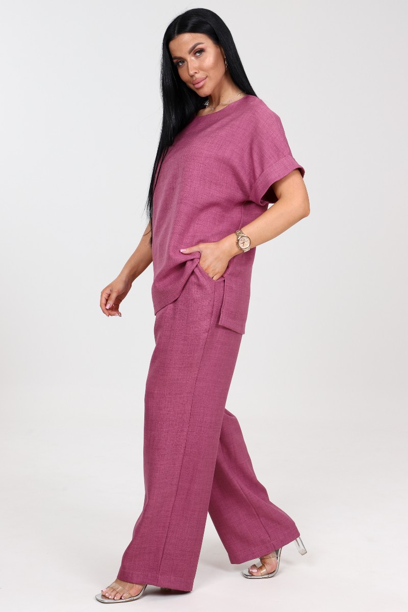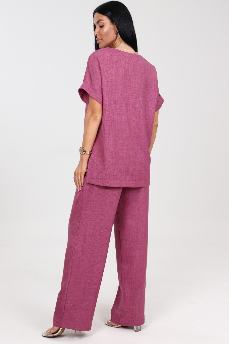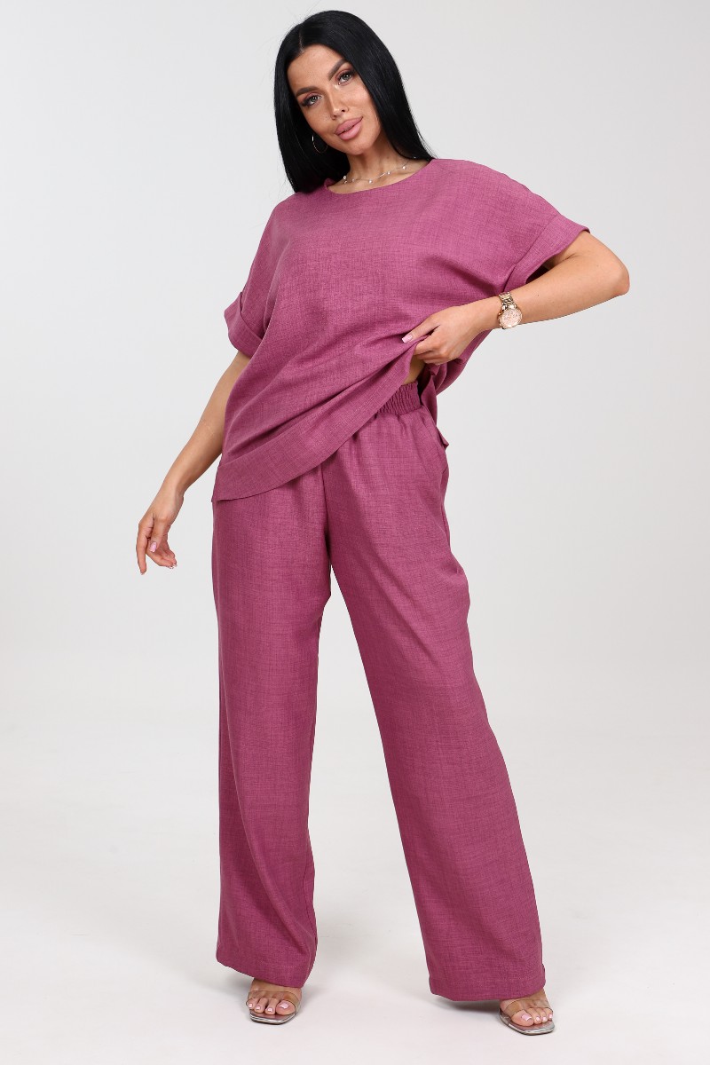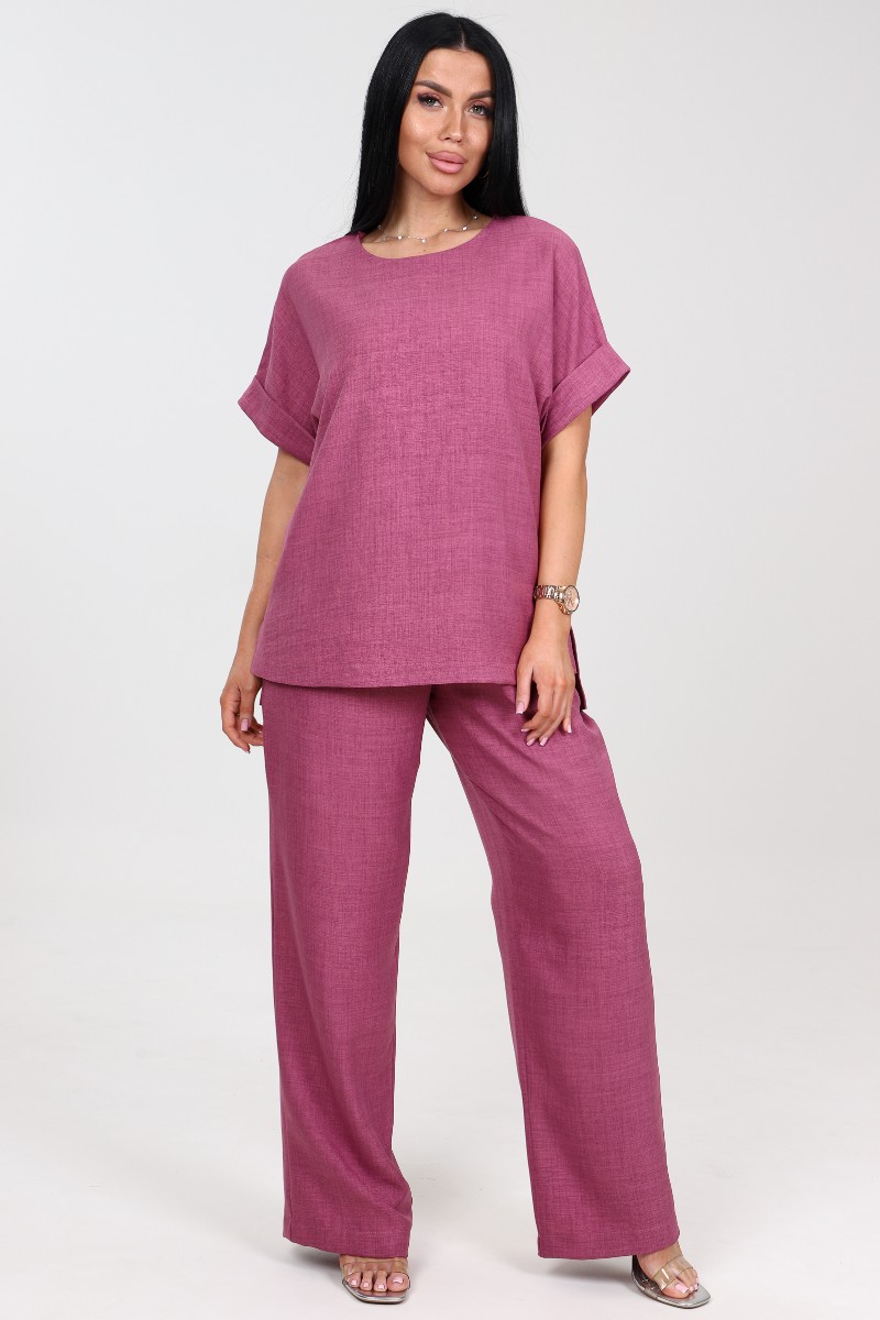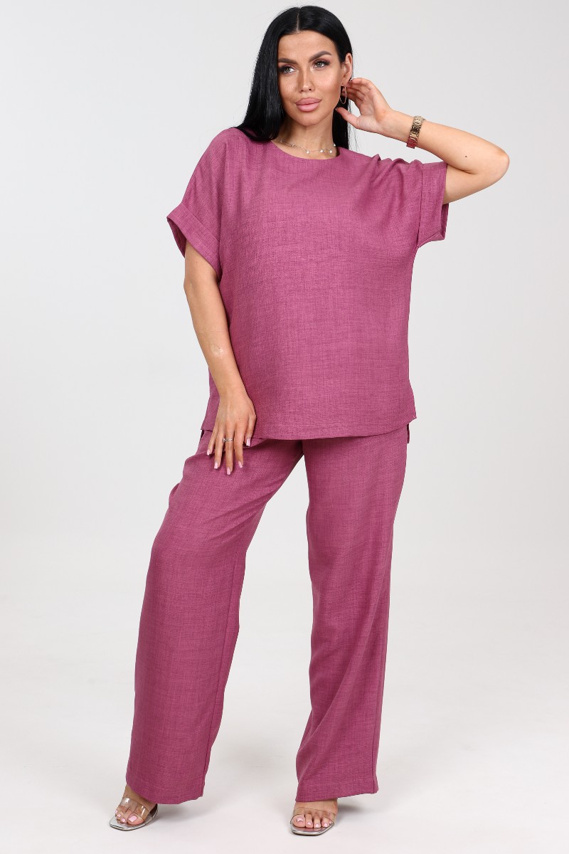Костюм двойка женский "Шик" КЛ-2572 имитация льна (последний размер) малина 56,58