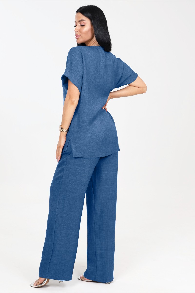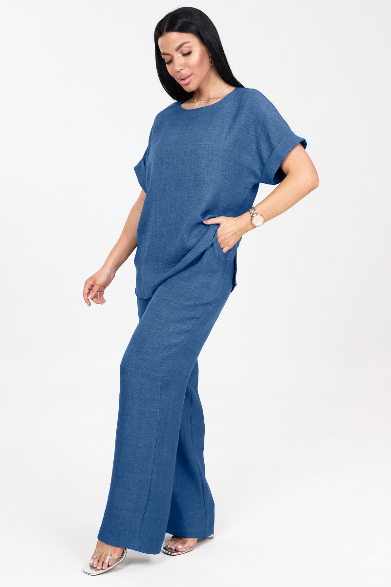 Костюм двойка женский "Шик" КЛ-2572 имитация льна (последний размер) джинс светлый 48,58