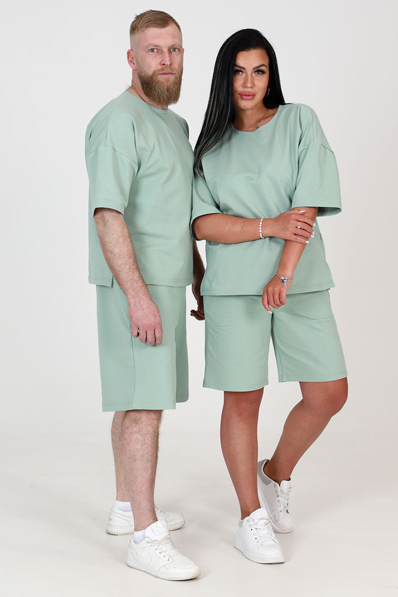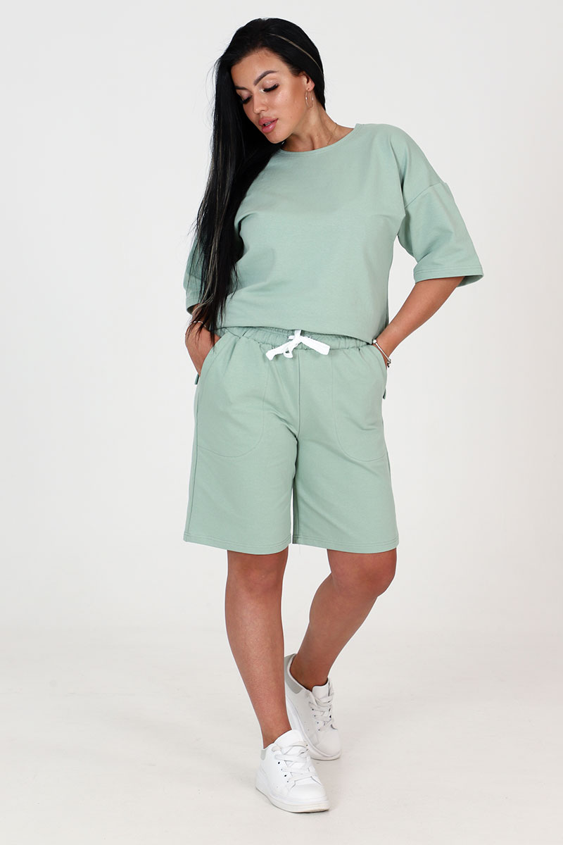 Представляем Вашему вниманию костюм в стиле Спорт Шик с удлиненными шортами / бермудами. Костюм оверсайз состоит из удобных бермудов и свободной футболки. Рукава спущенные. Бермуды на мягком поясе-резинке, со шнурком. На передних половинках карманы. Вход в карман наклонный к боковому шву. Идеален для прогулок, занятий спортом, для активного отдыха, поездок на природу.