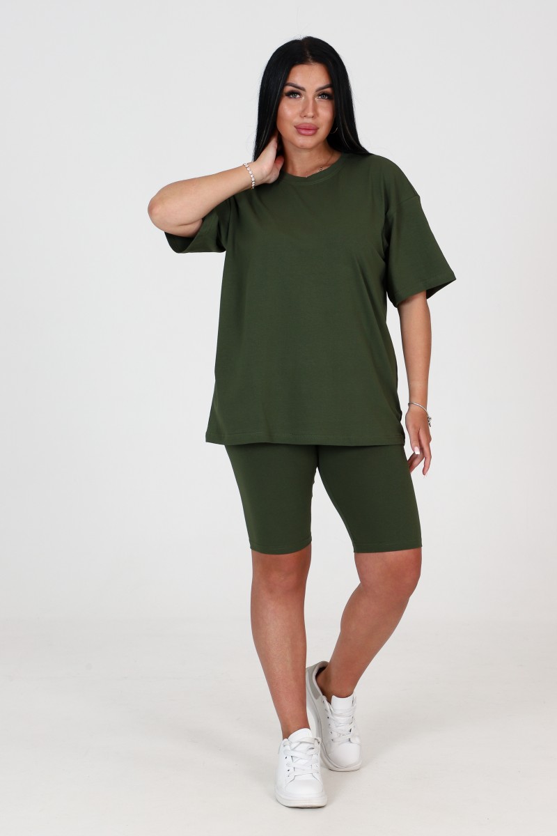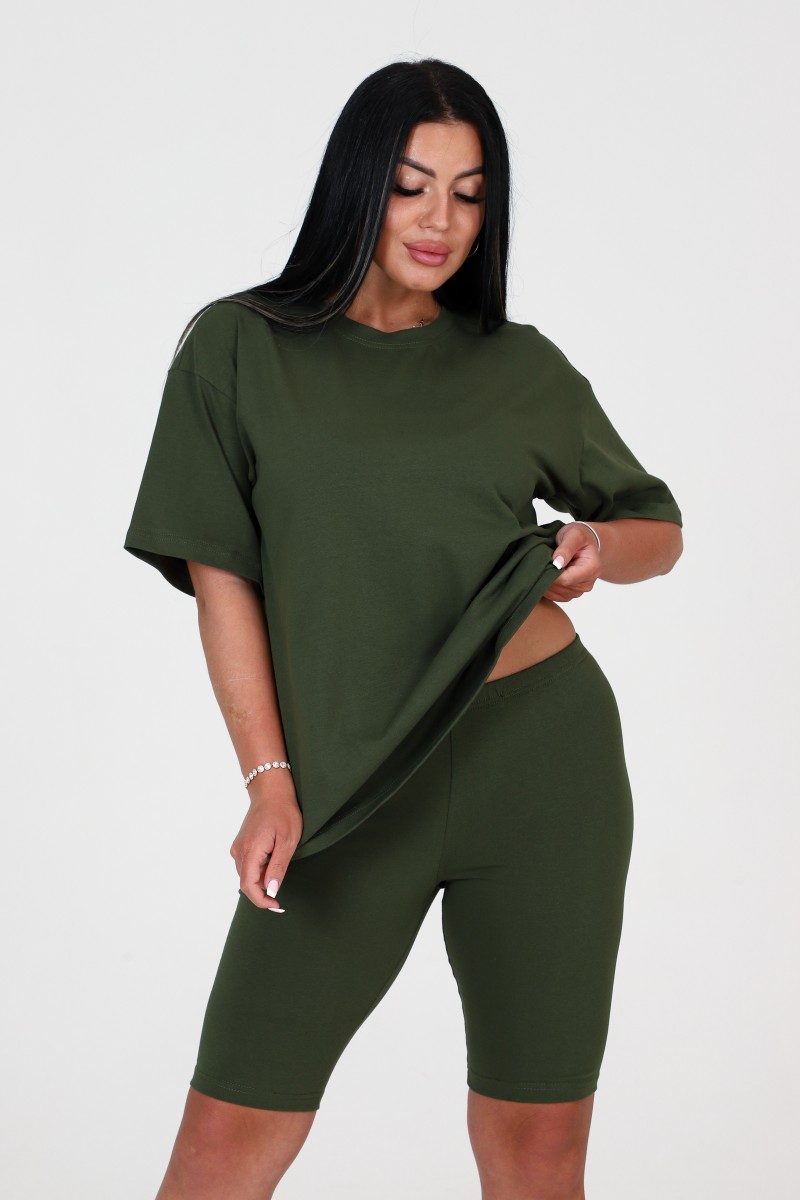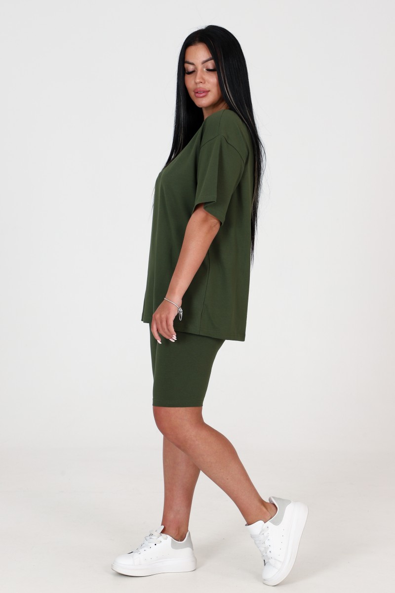 Костюм двойка женский КК-1503 кулирка с лайкрой (последний размер) хаки 48
