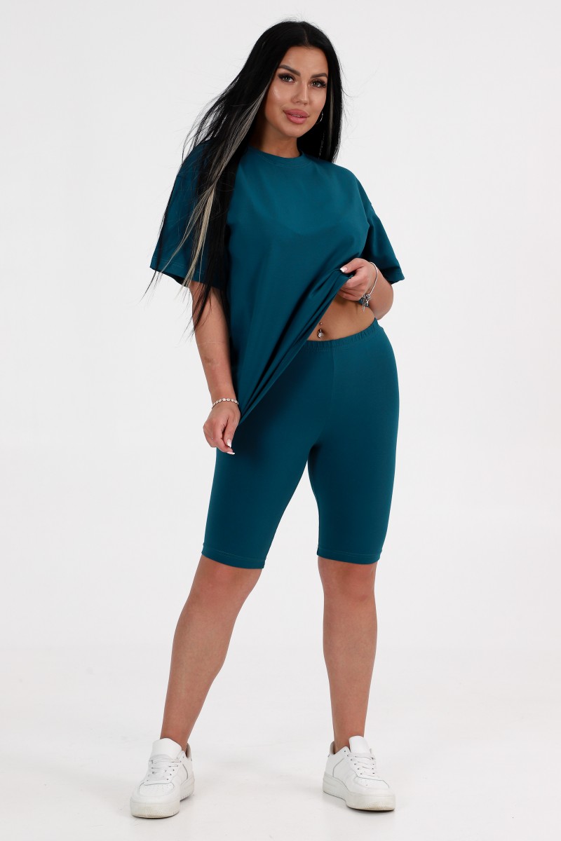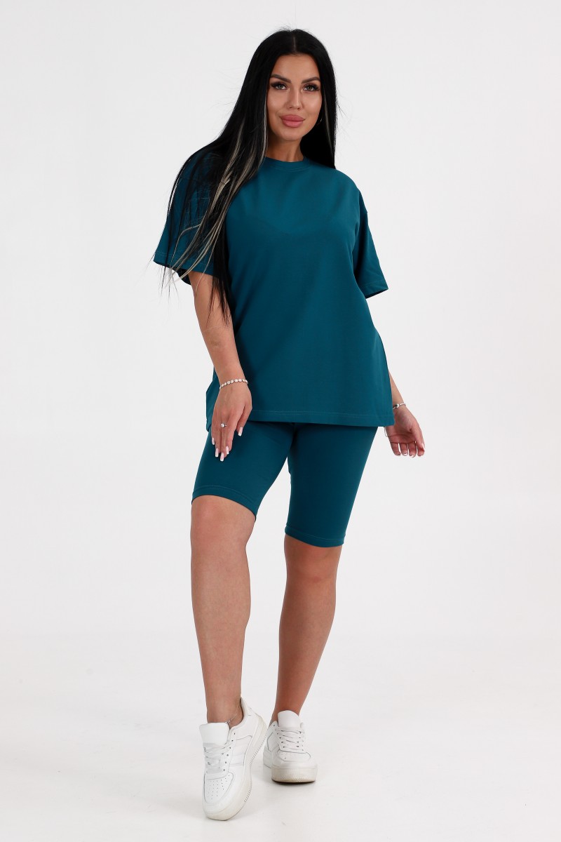 Костюм двойка женский КК-1503 кулирка с лайкрой (последний размер) петроль 48