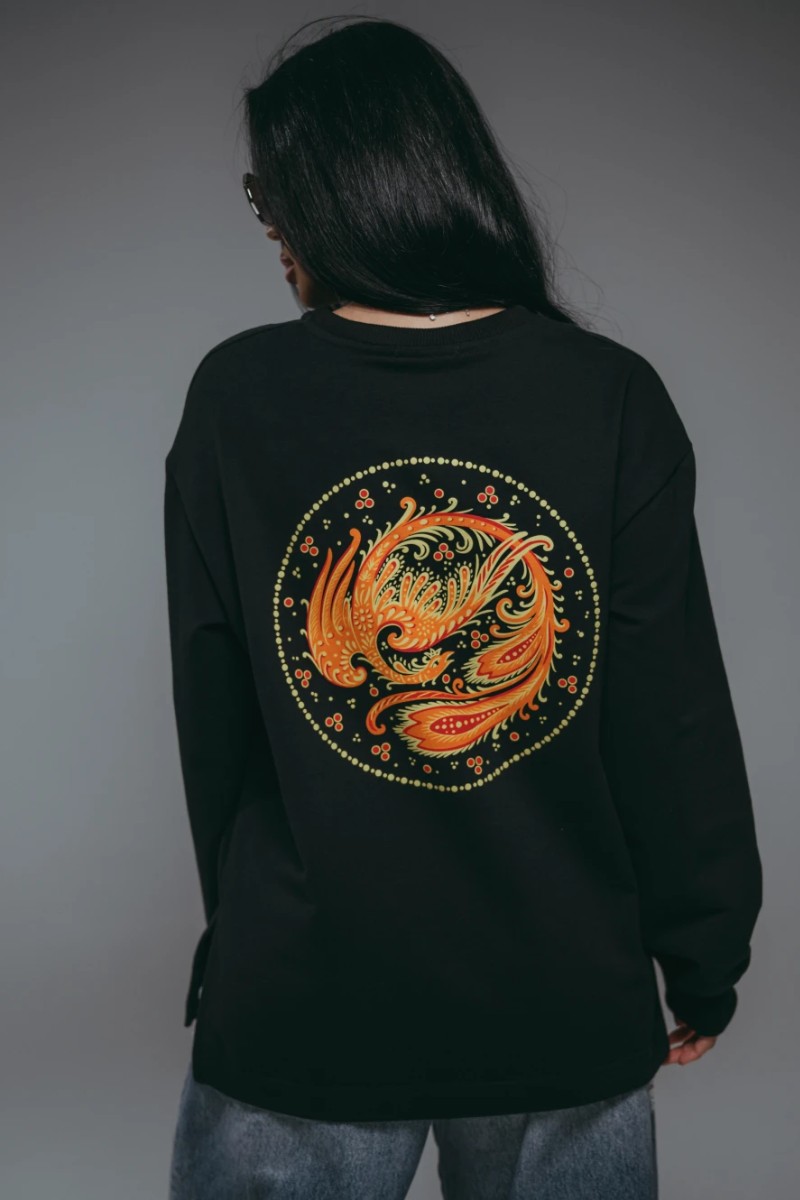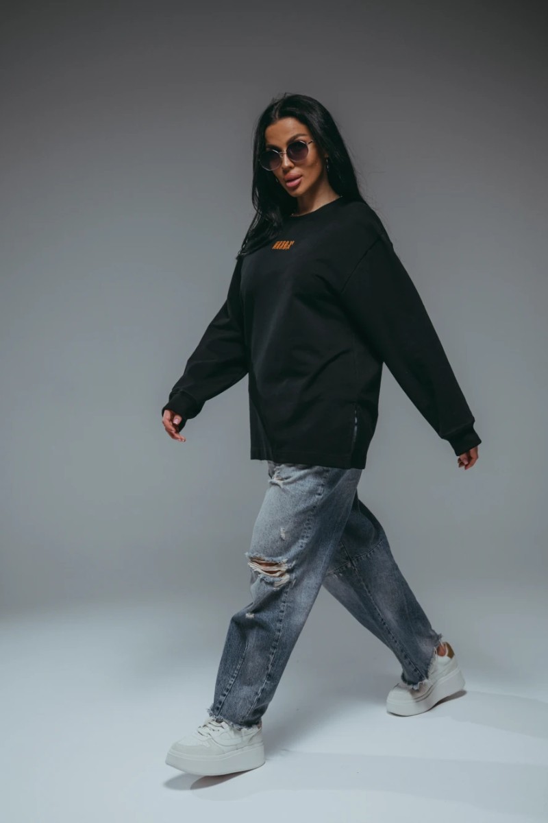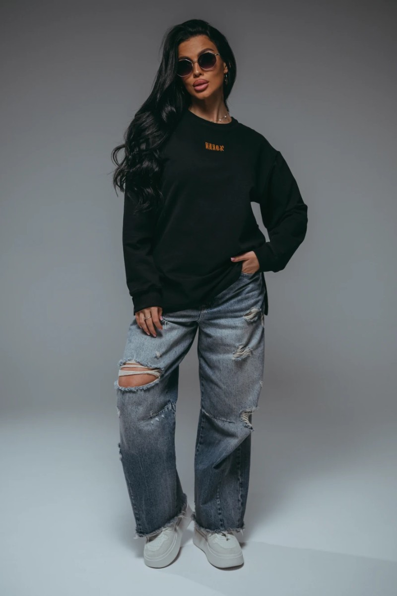 Свитшот женский "Русь" футер 2-х нитка пенье фирча (р-ры: 44-58) чёрный