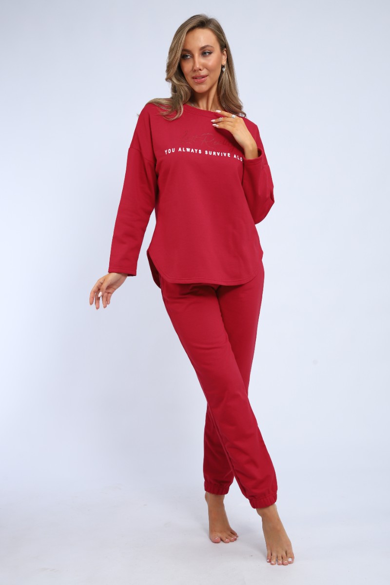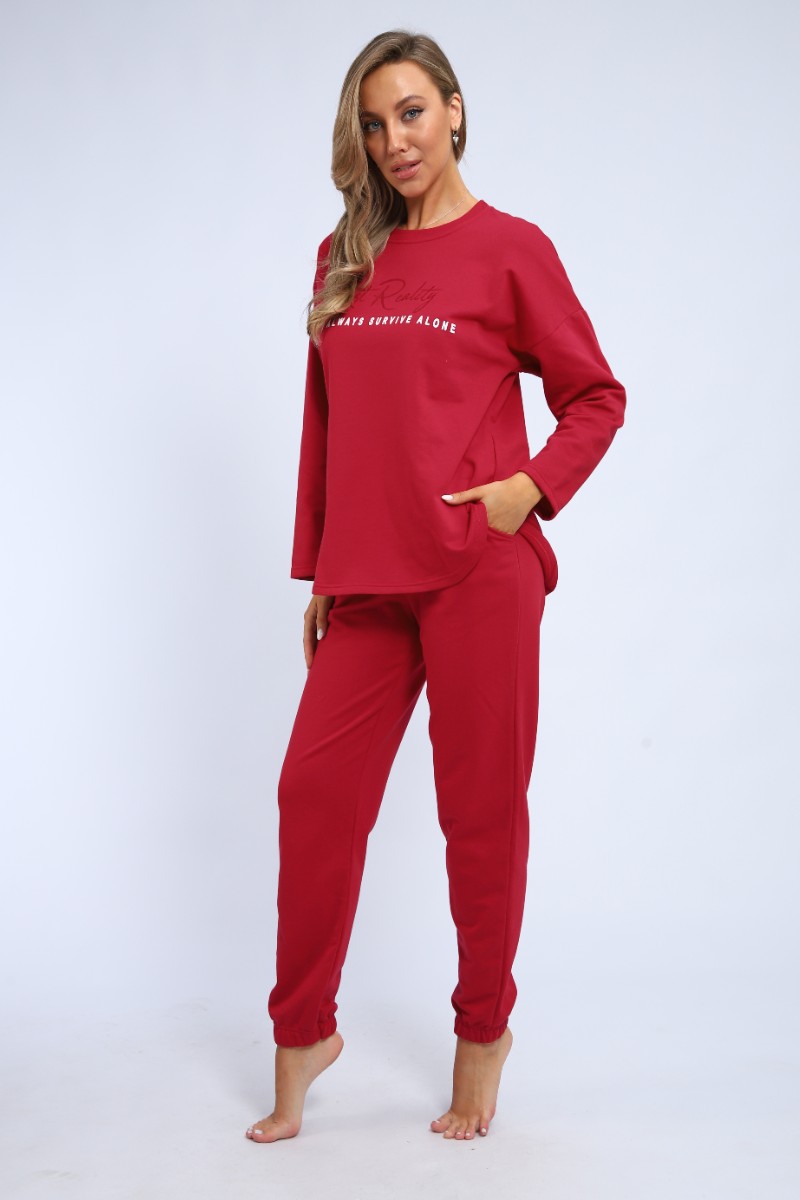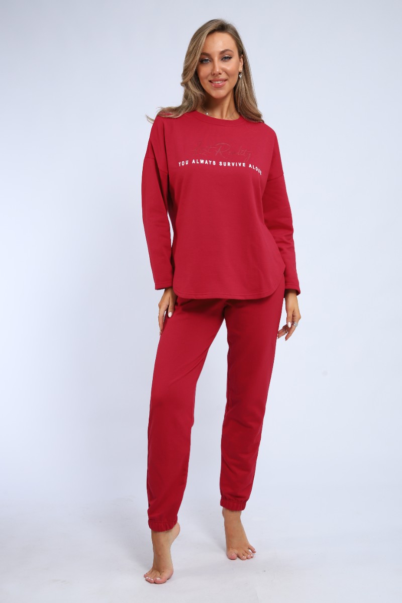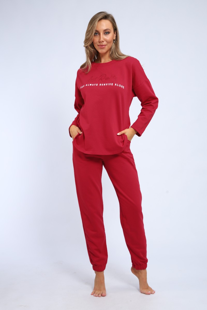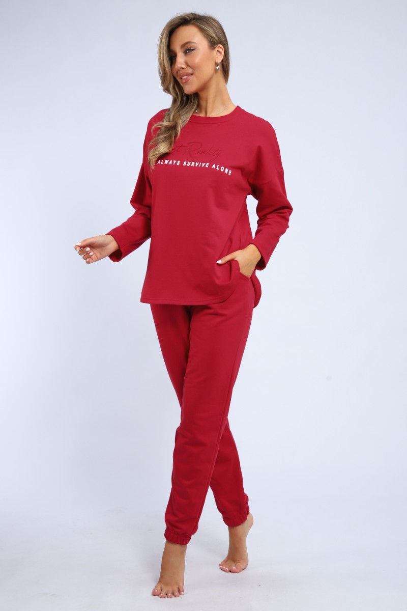 Пижама женская "Оливия" М391 футер (р-ры: 46-60) бордо
