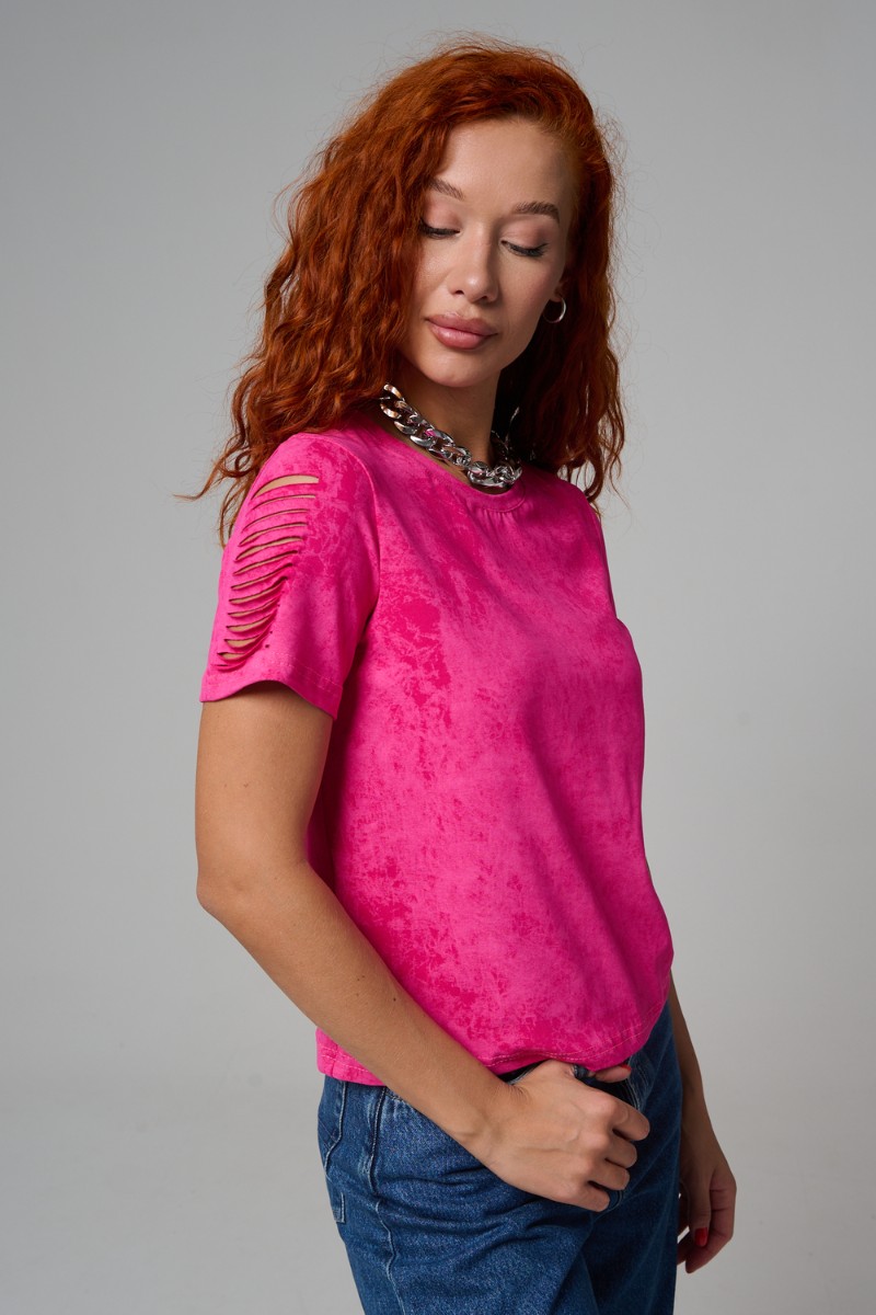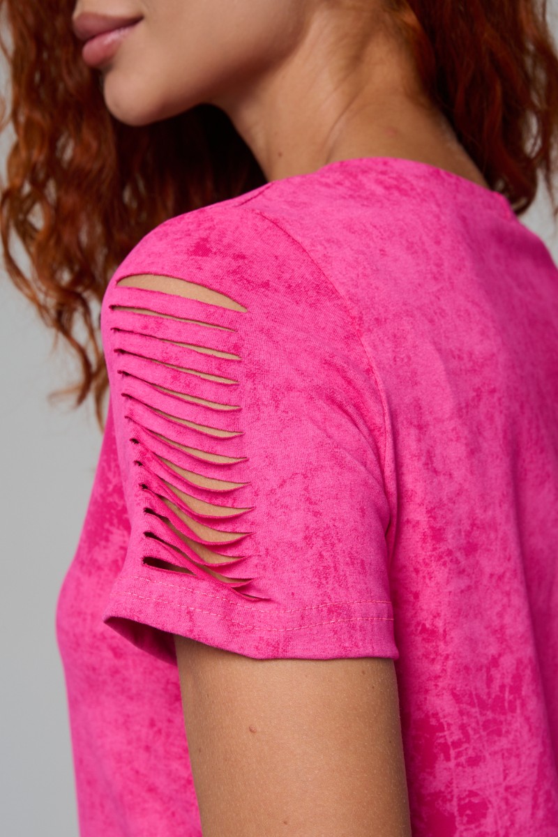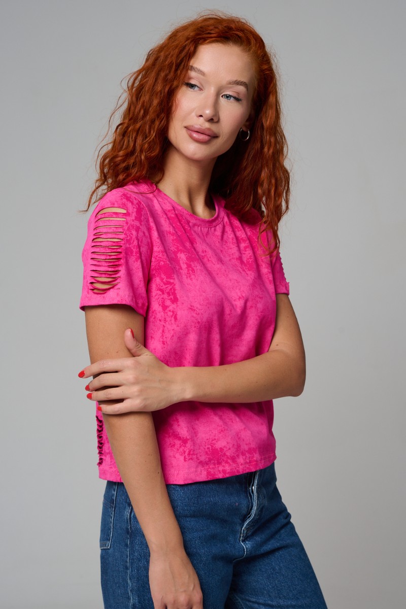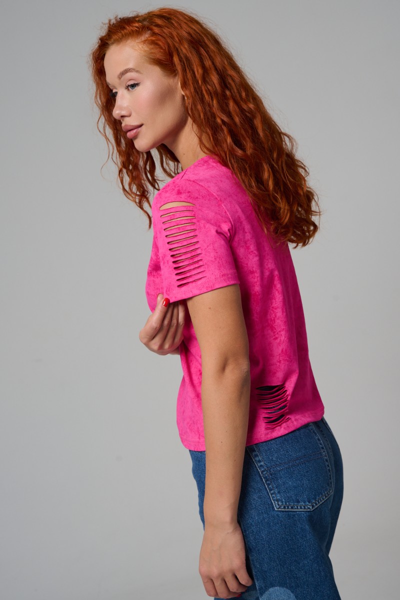 Представляем Вашему вниманию трендовую футболку-оверсайз, сшитую из приятного телу, качественного материала. Необычный оттенок и эффектная рваная обработка создают уникальный стиль.