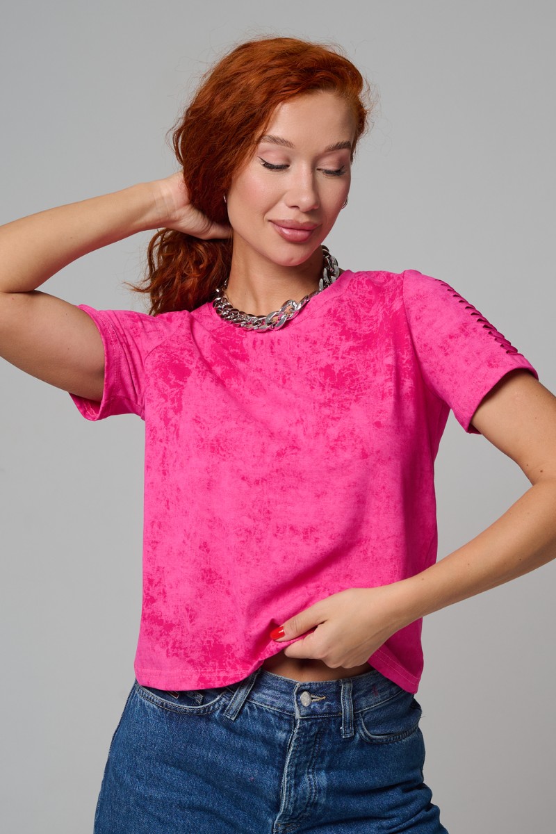 Футболка женская №7497 кулирка с лайкрой пенье (р-ры: 42-52) розовый винтаж