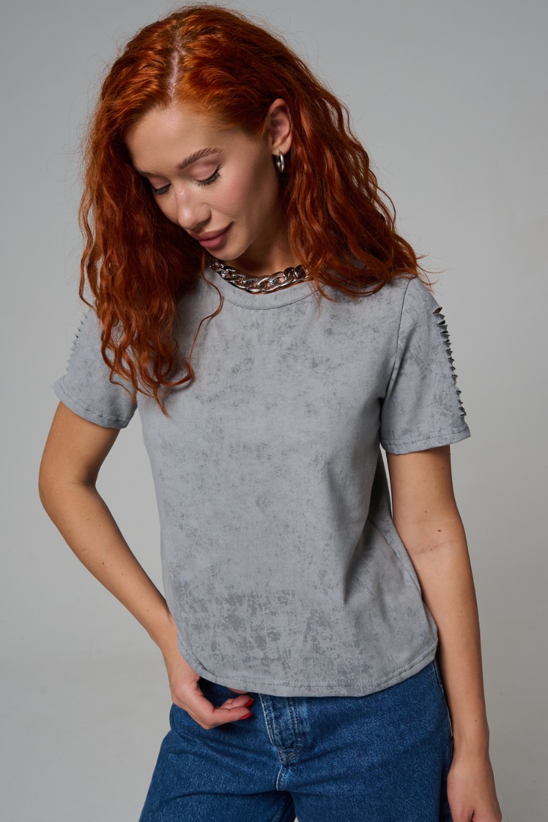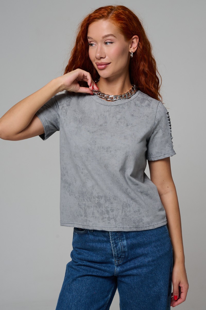 Футболка женская №7497 кулирка с лайкрой пенье (р-ры: 42-52) серый винтаж