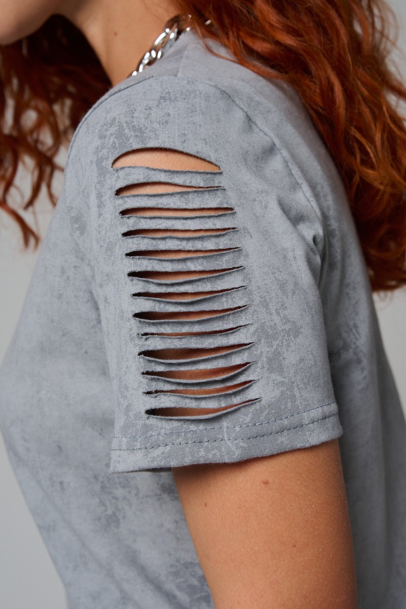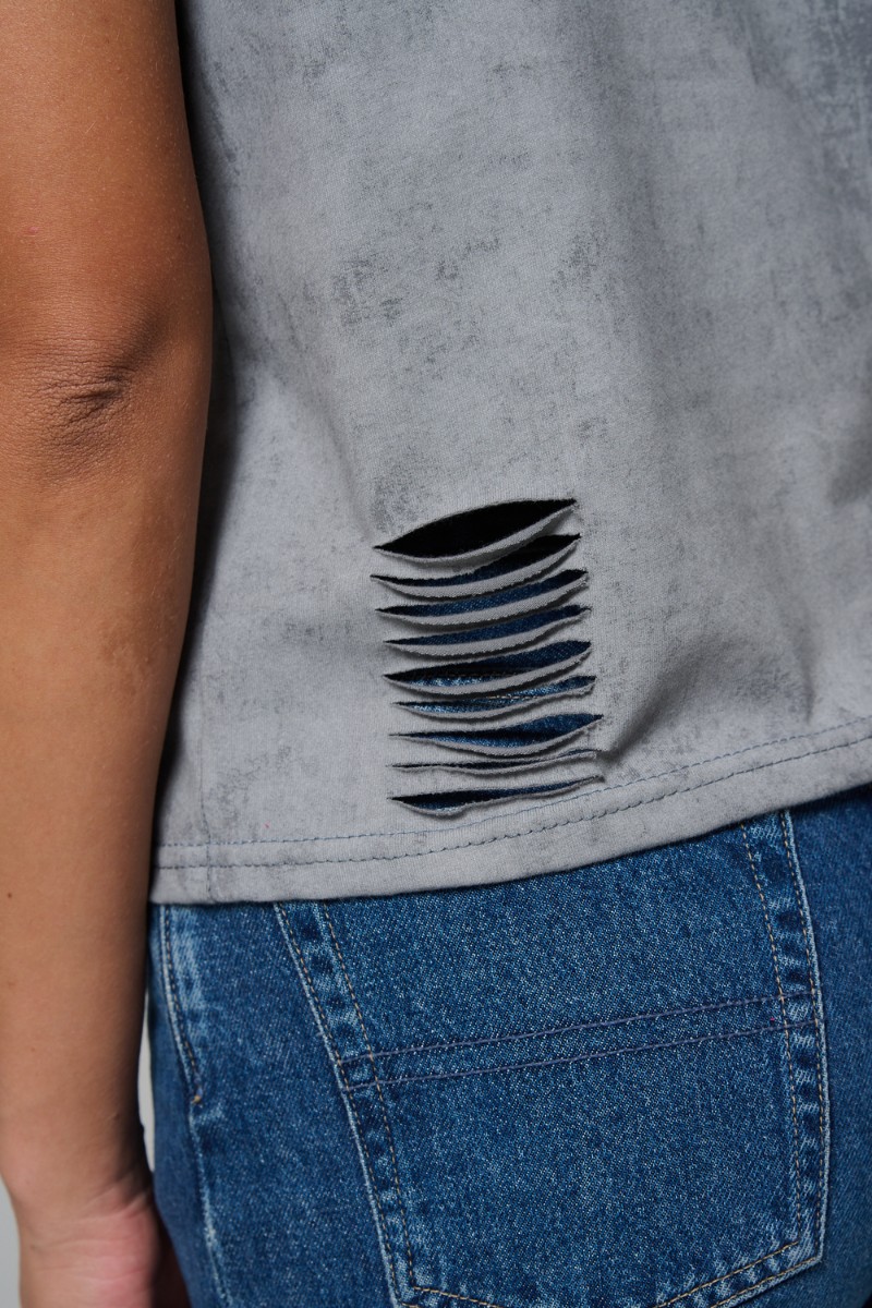 Представляем Вашему вниманию трендовую футболку-оверсайз, сшитую из приятного телу, качественного материала. Необычный оттенок и эффектная рваная обработка создают уникальный стиль.
