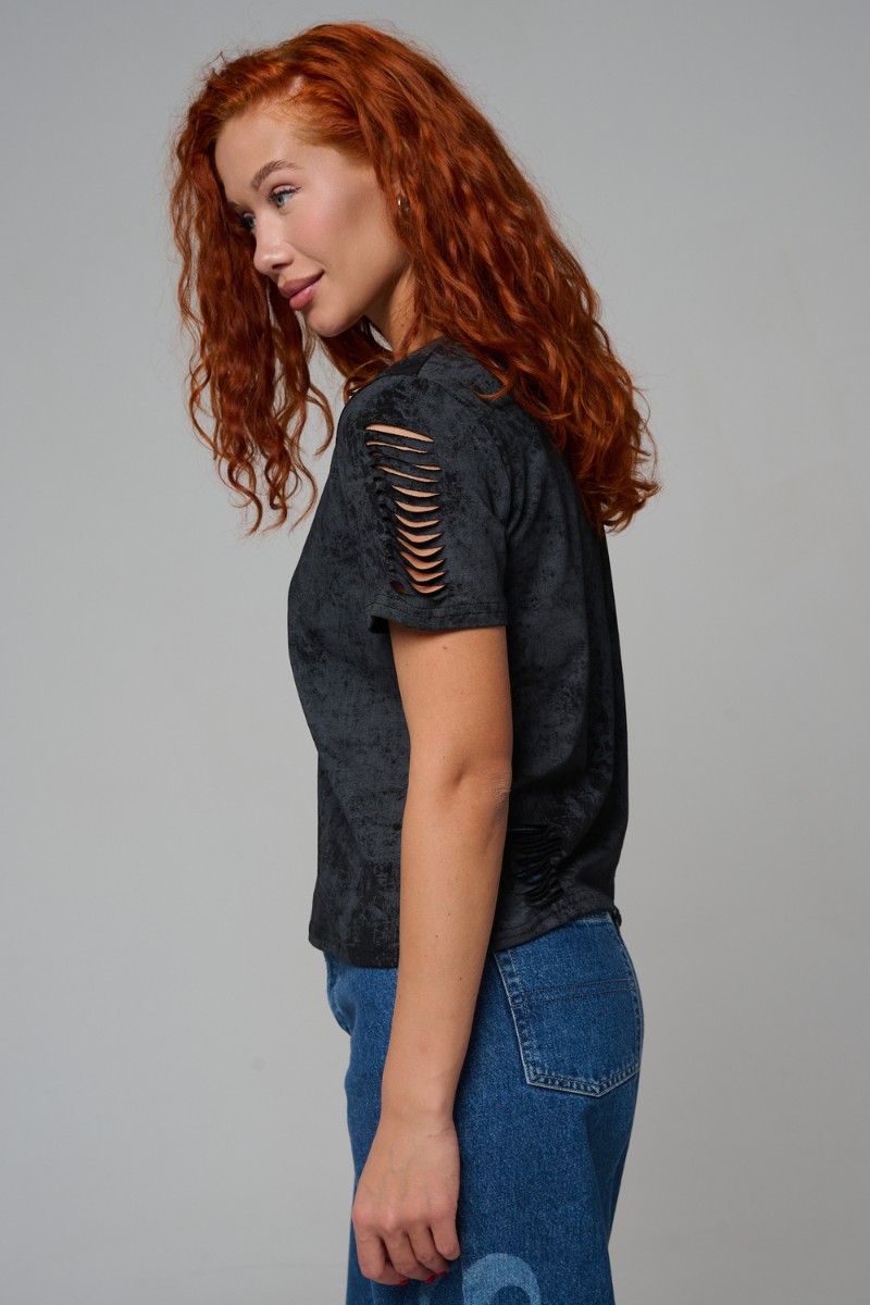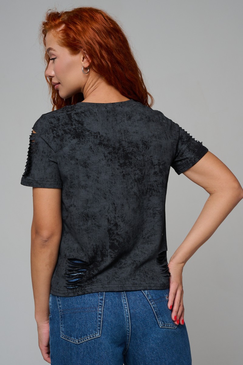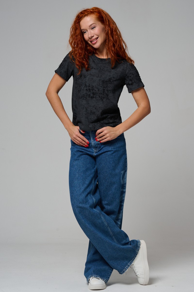 Футболка женская №7497 кулирка с лайкрой пенье (р-ры: 42-52) черный винтаж