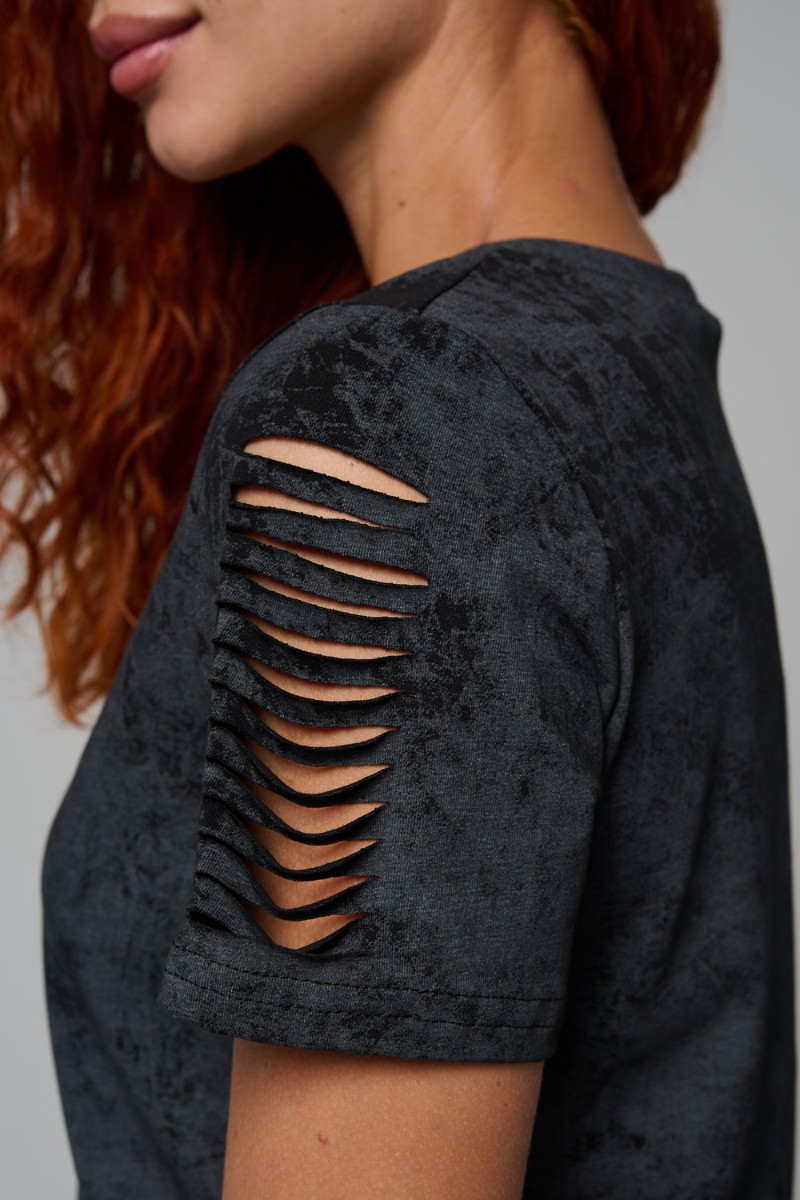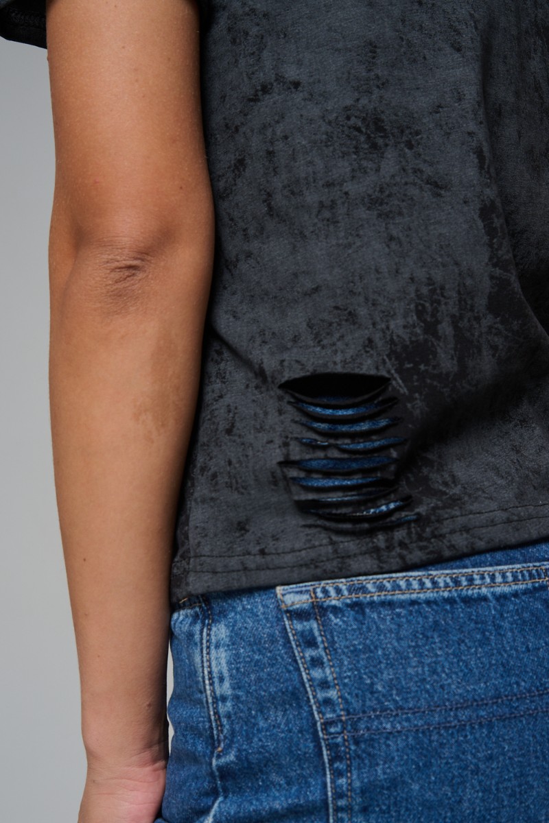 Представляем Вашему вниманию трендовую футболку-оверсайз, сшитую из приятного телу, качественного материала. Необычный оттенок и эффектная рваная обработка создают уникальный стиль.