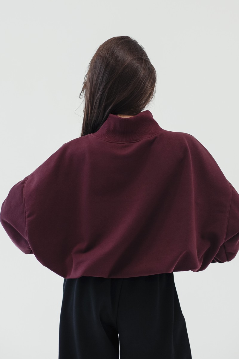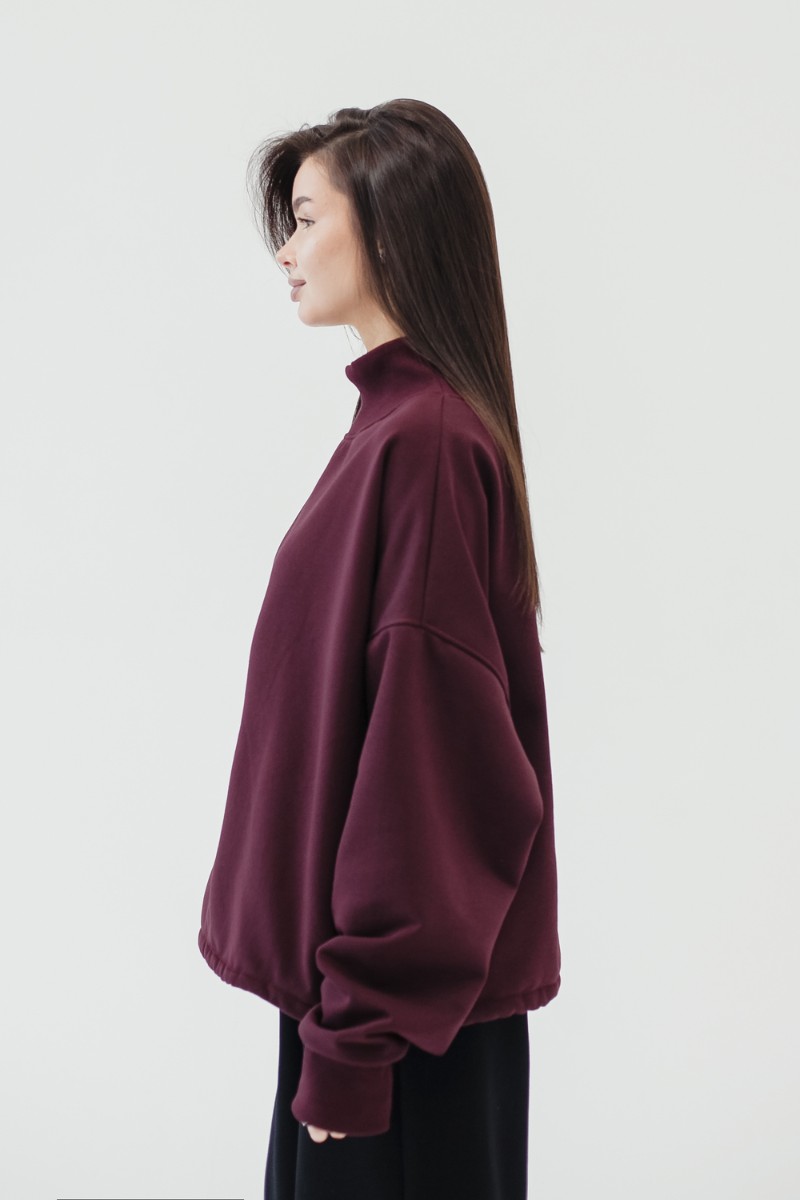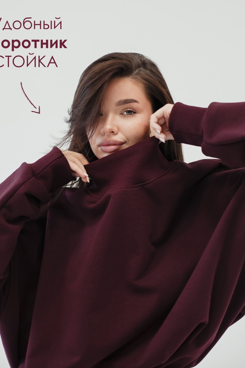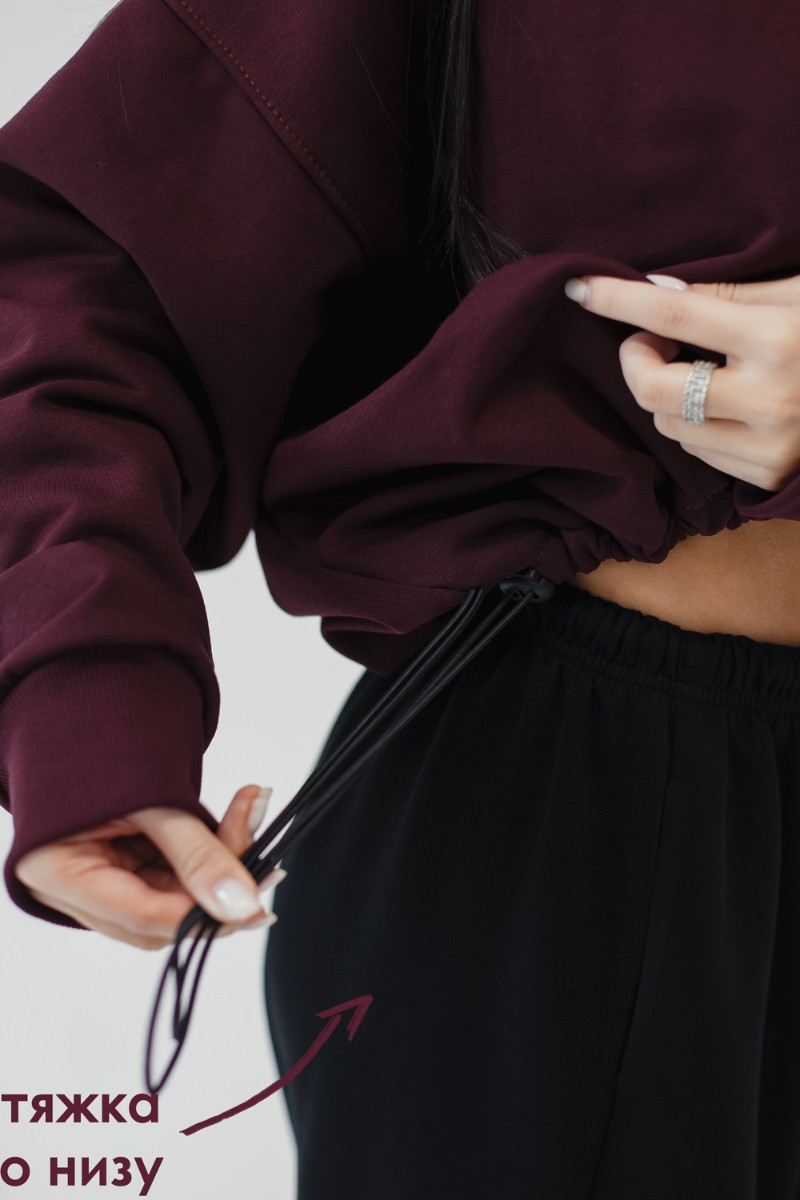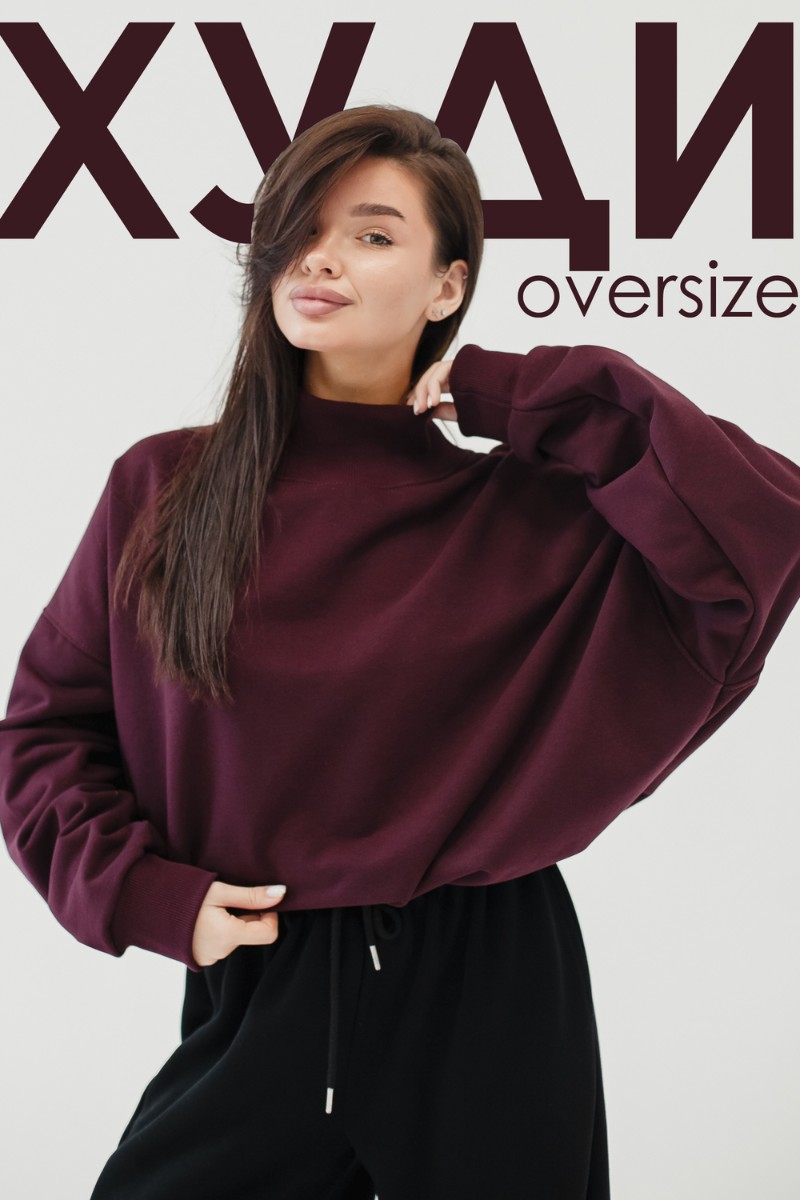 Худи женское №057038 футер на флисе (р-ры: 44-56) бордовый