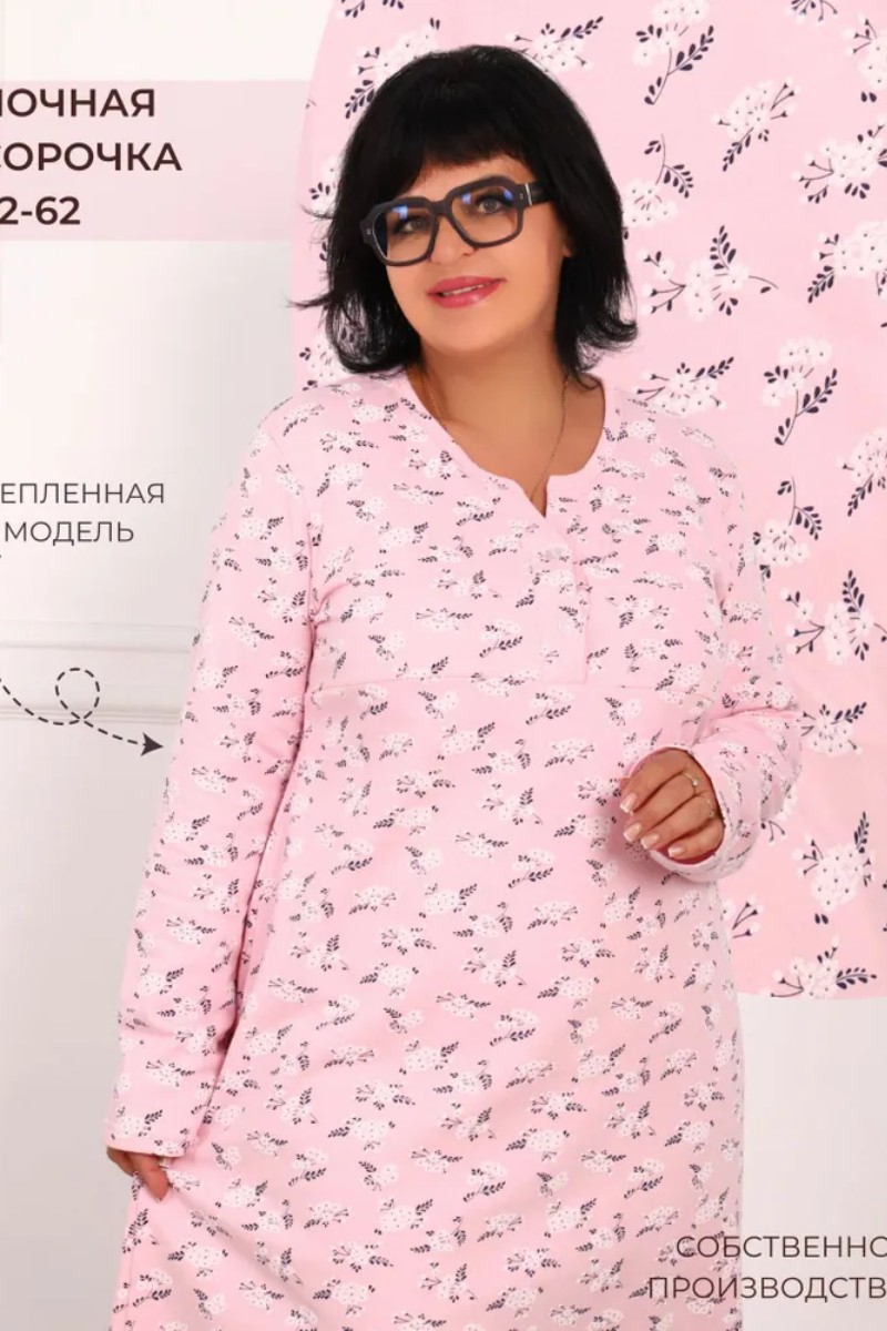 Сорочка женская "Нежность" футер (р-ры: 48-62) розовый