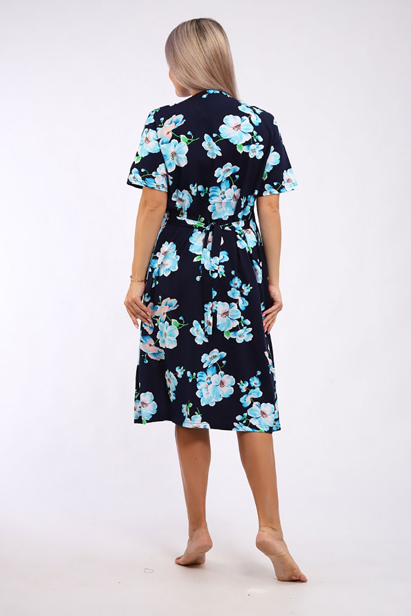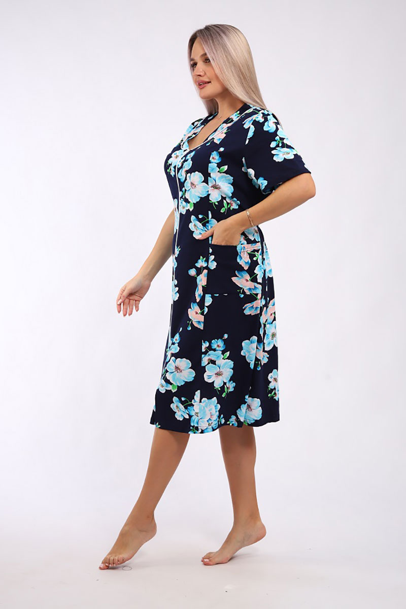 Халат женский "Кокетка" кулирка (р-ры: 52-70) голубая сакура