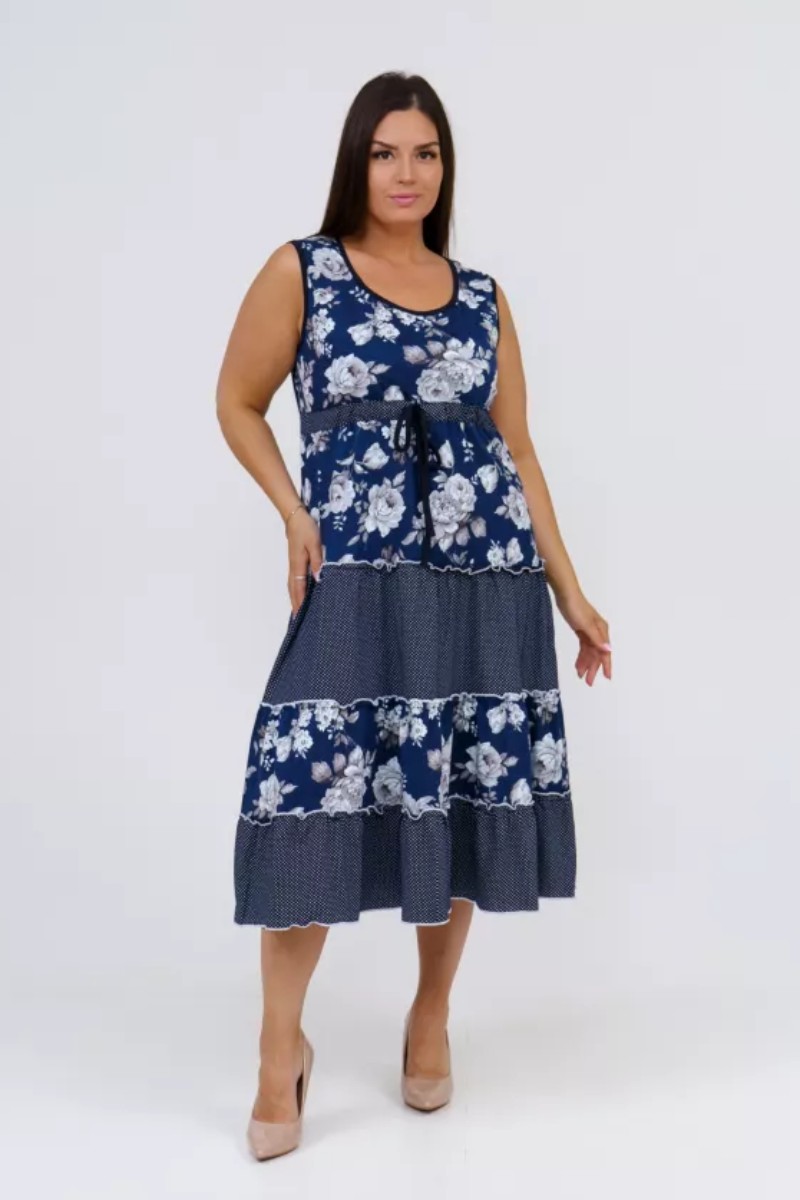 Представляем Вашему вниманию сарафан с расклешенной юбкой, длина за колено, с фальш-поясом под грудью, отделка воланы. Модель выполнена из 100% натурального, приятного телу хлопка, который отлично пропускает воздух, позволяя коже дышать.