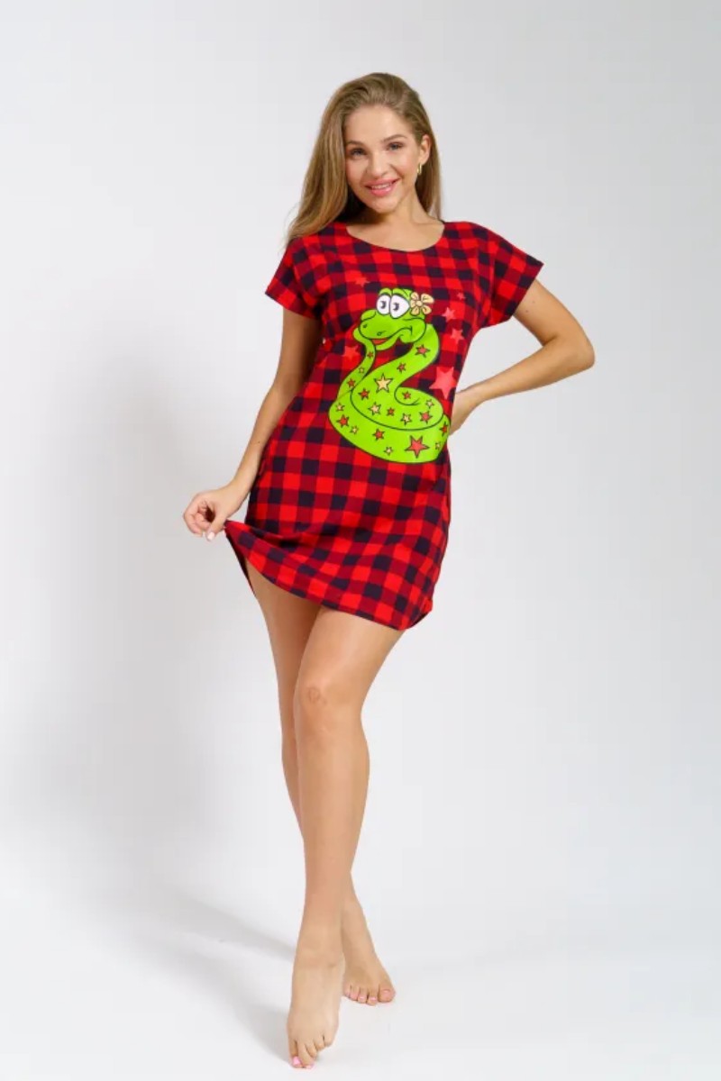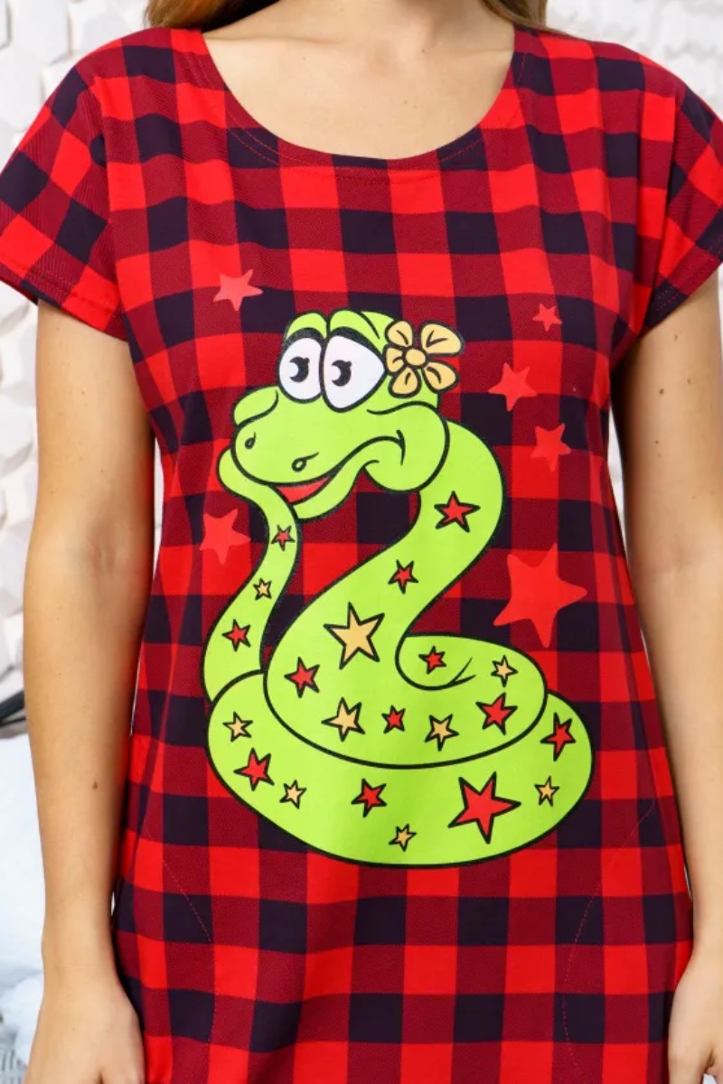 Туника женская "Стрекоза" 1339 кулирка (последний размер) красная змея 46