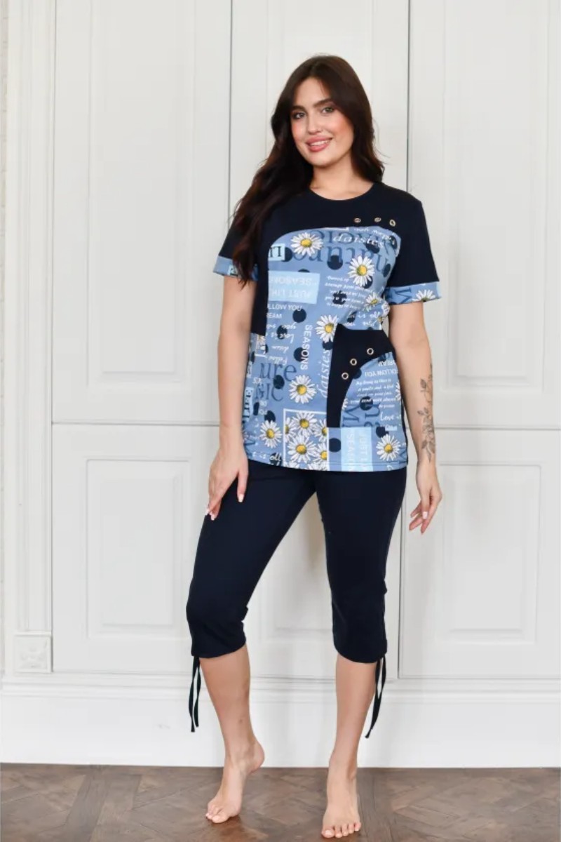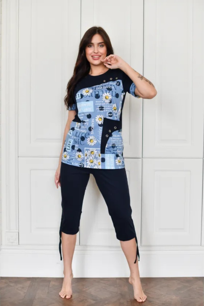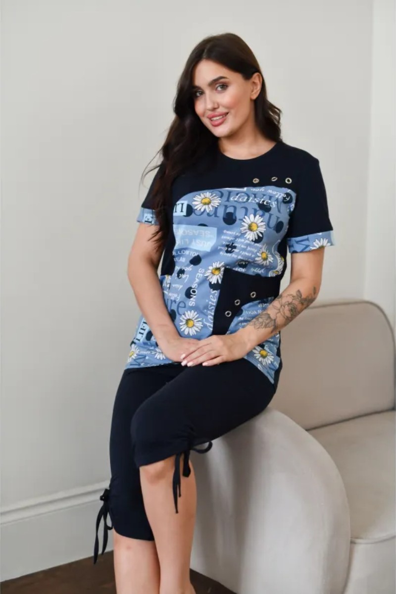 Костюм двойка женский "Сара" 1208-1 кулирка (последний размер) ромашка 60