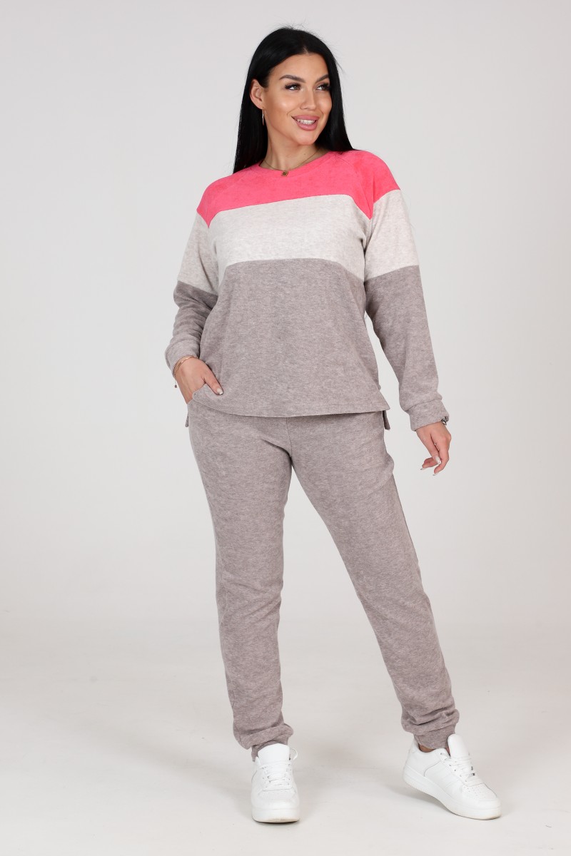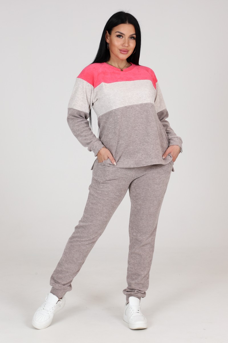 Костюм двойка женский "Домашний" КМ-514 махра (последний размер) коралл 50,52