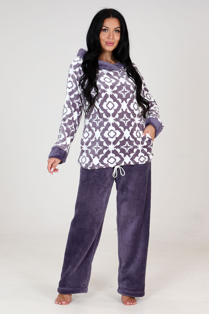 Представляем Вашему вниманию стильный домашний костюм из велсофта. Это оень уютный, теплый, удобный костюм. Идеальный вариант для тех, кто хочет потеплее укататься дома в осенне-зимнюю прохладную погоду. Толстовка с капюшоном, рукава на манжете, 2 кармана, брючки прямые.