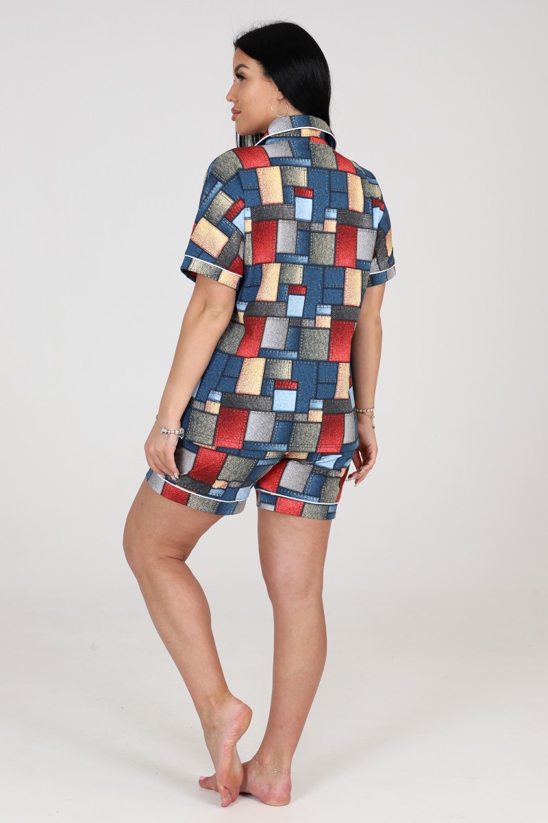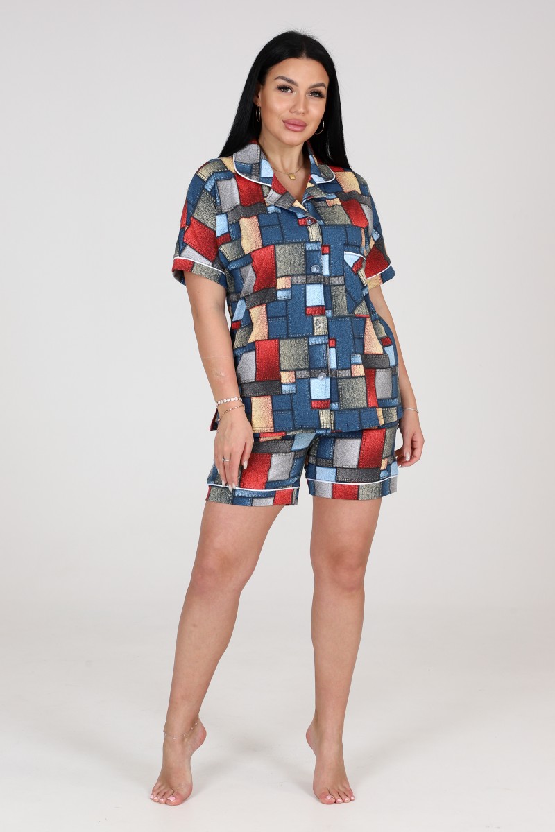 Представляем Вашему вниманию легкий женский костюм двойку для дома, который также можно использовать в качестве пижамы. Комплект имеет интересную расцветку, которая красиво смотрится и поднимает настроение. Костюм хорошо сидит на фигуре и подчеркивает её достоинства. В нём Вы будете чувствовать себя комфортно и уверенно.