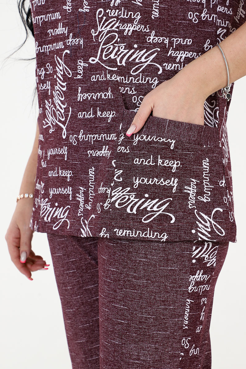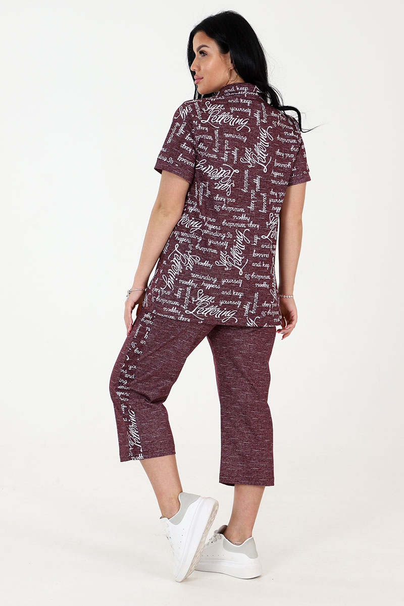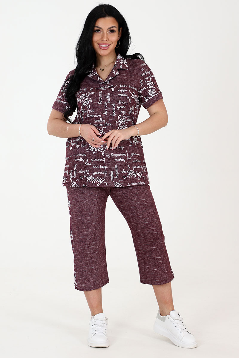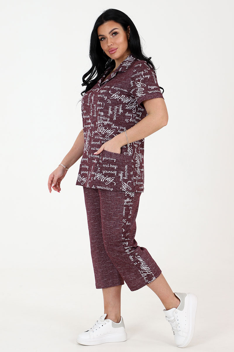 Костюм двойка женский КК-55 кулирка (последний размер) письмо на рогожке бордо 54