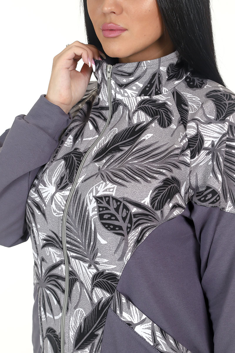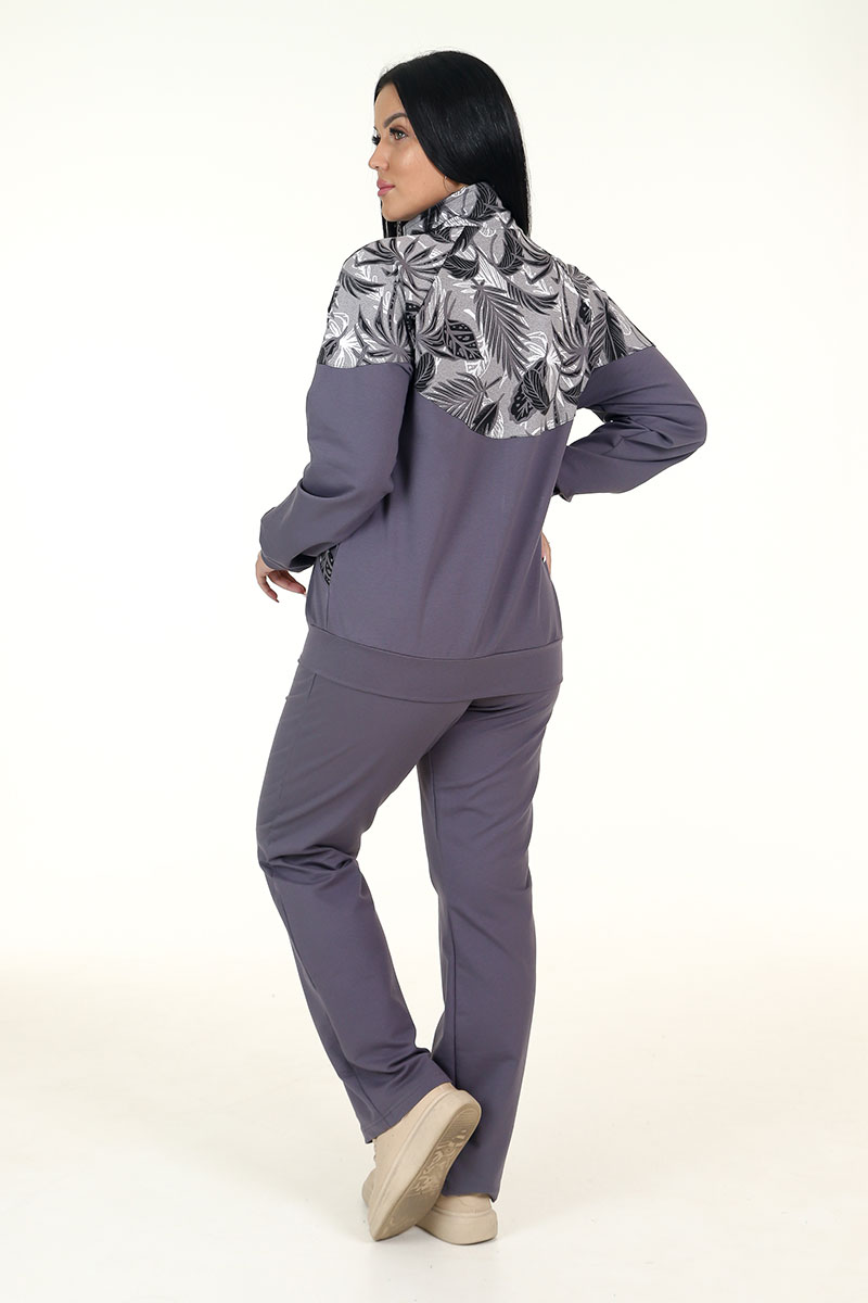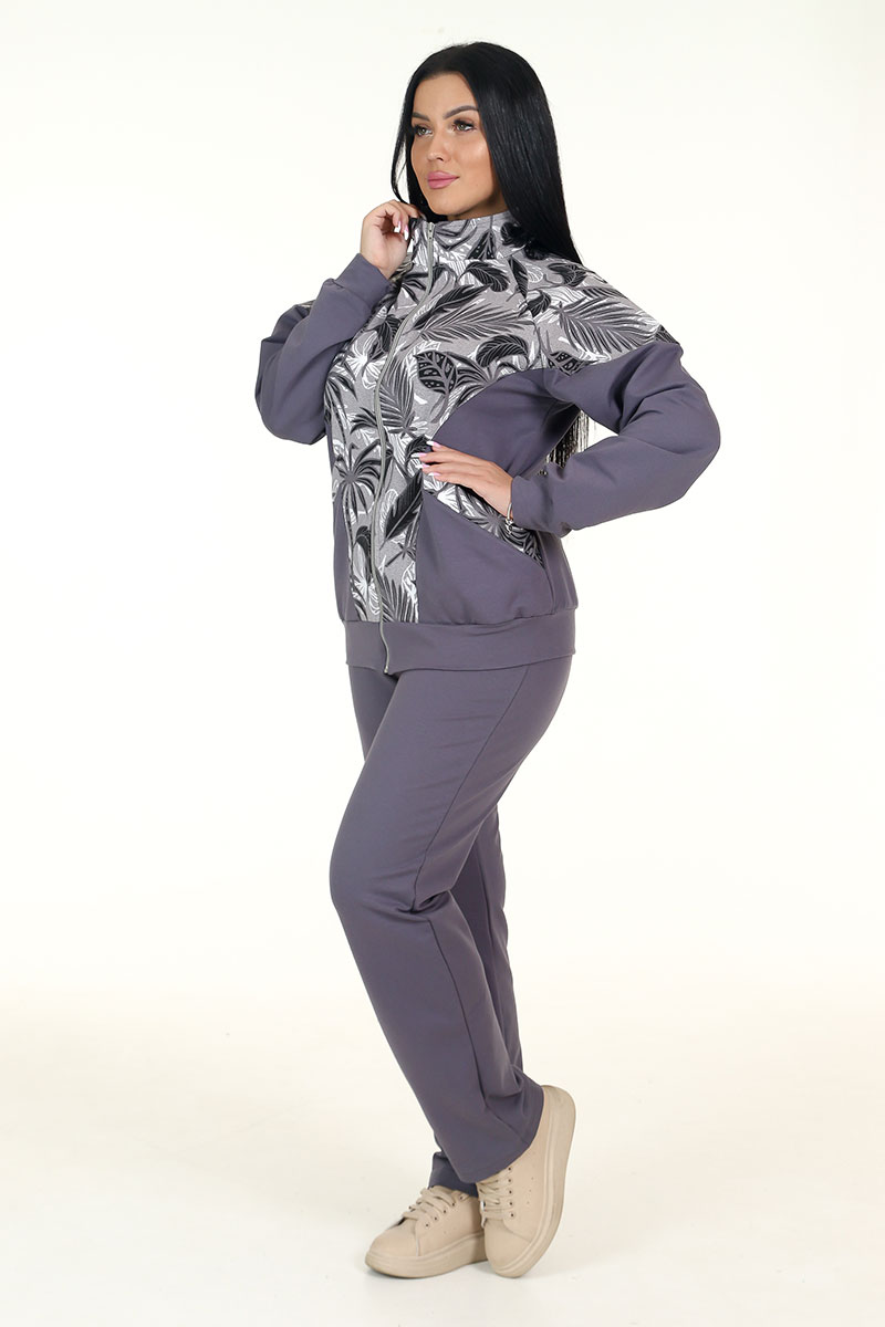 Костюм двойка женский КФ-215 "Люкс" футер (последний размер) серый папоротник 54,56