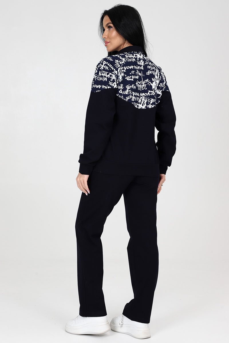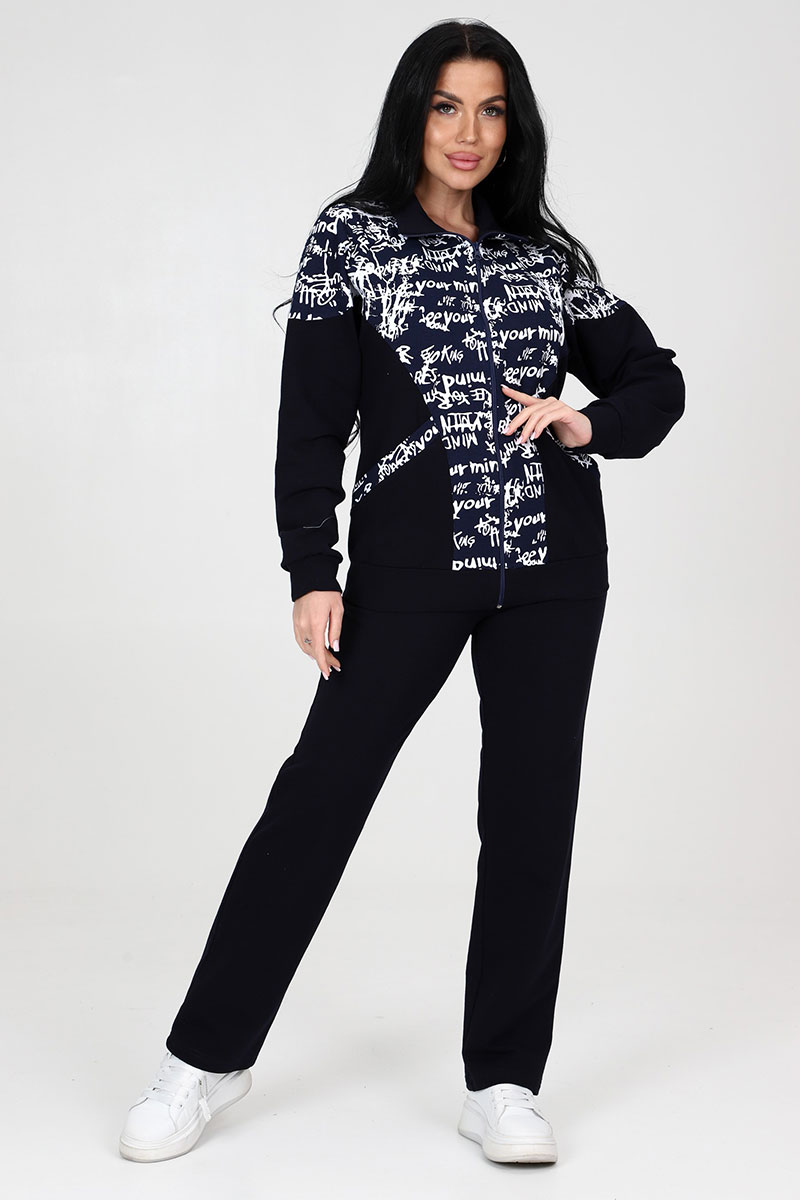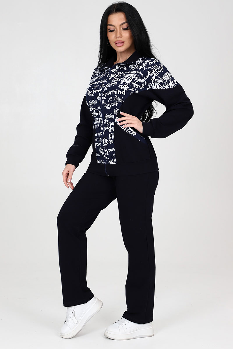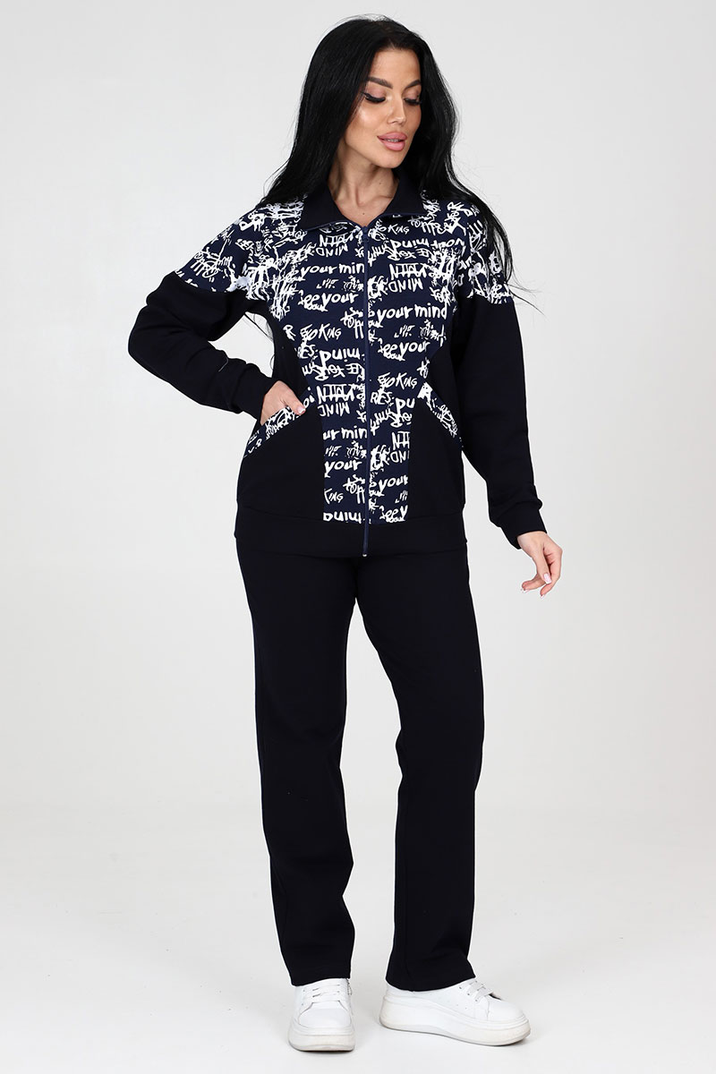 Костюм двойка женский КФ-215 футер (последний размер) темно-синий белые иероглифы 58