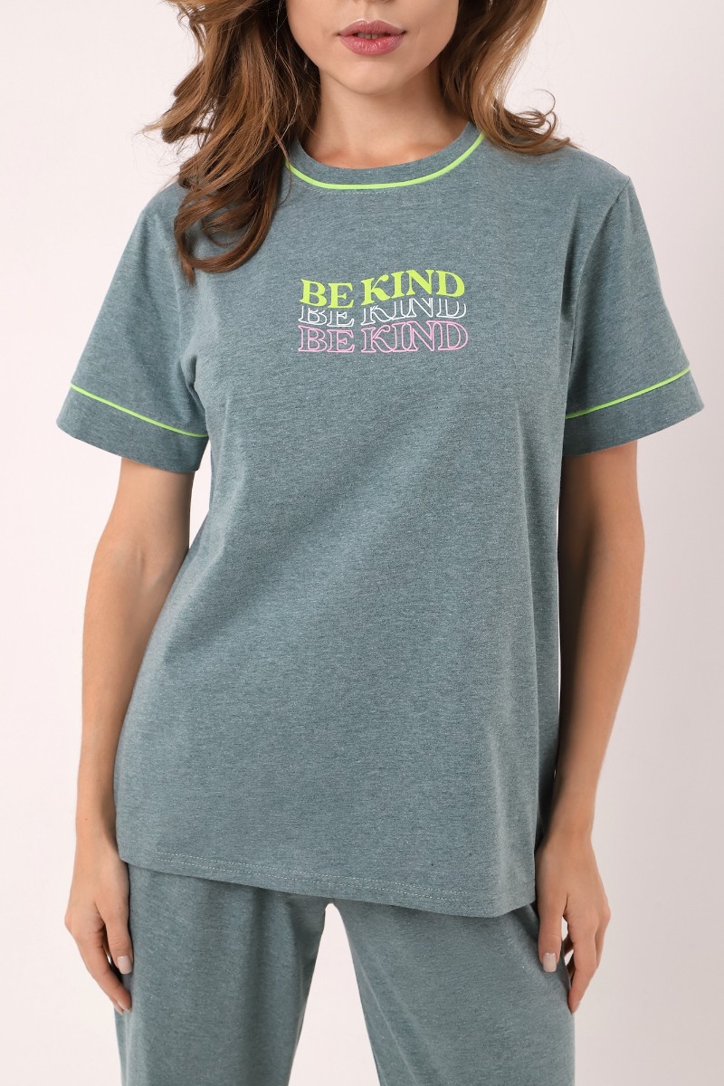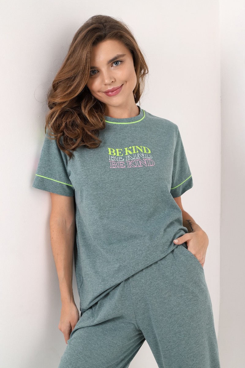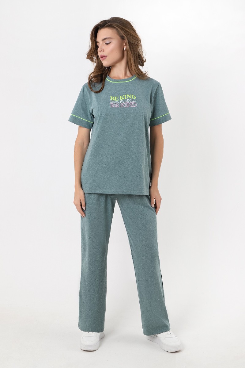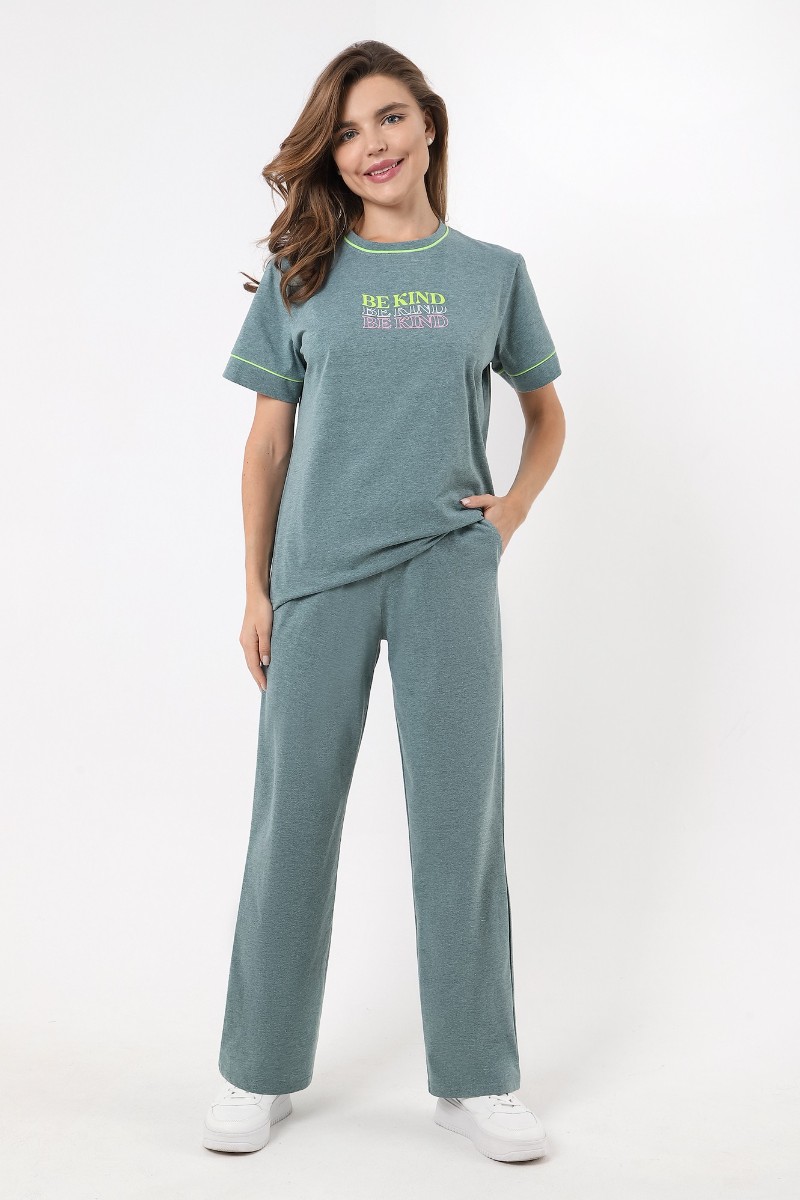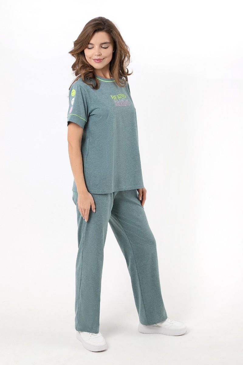 Костюм двойка женский "На удачу" кулирка меланж (последний размер) зеленый 44,46,48,52