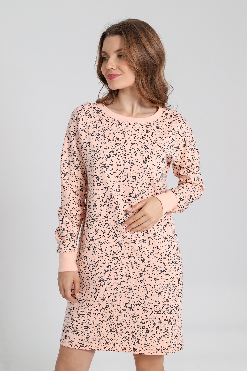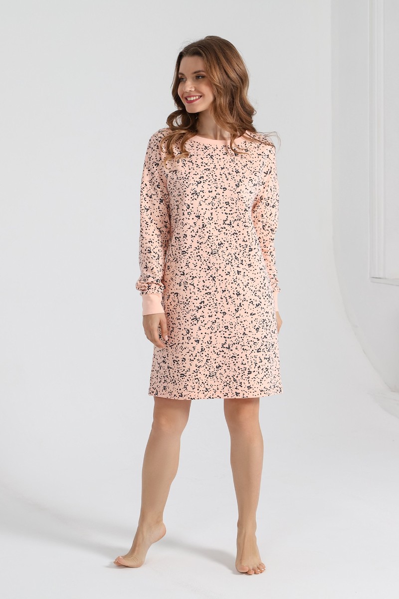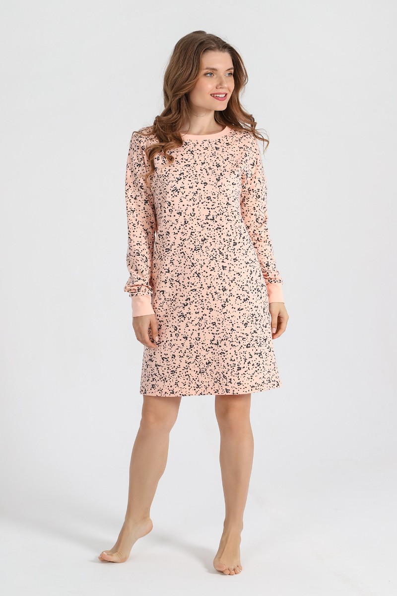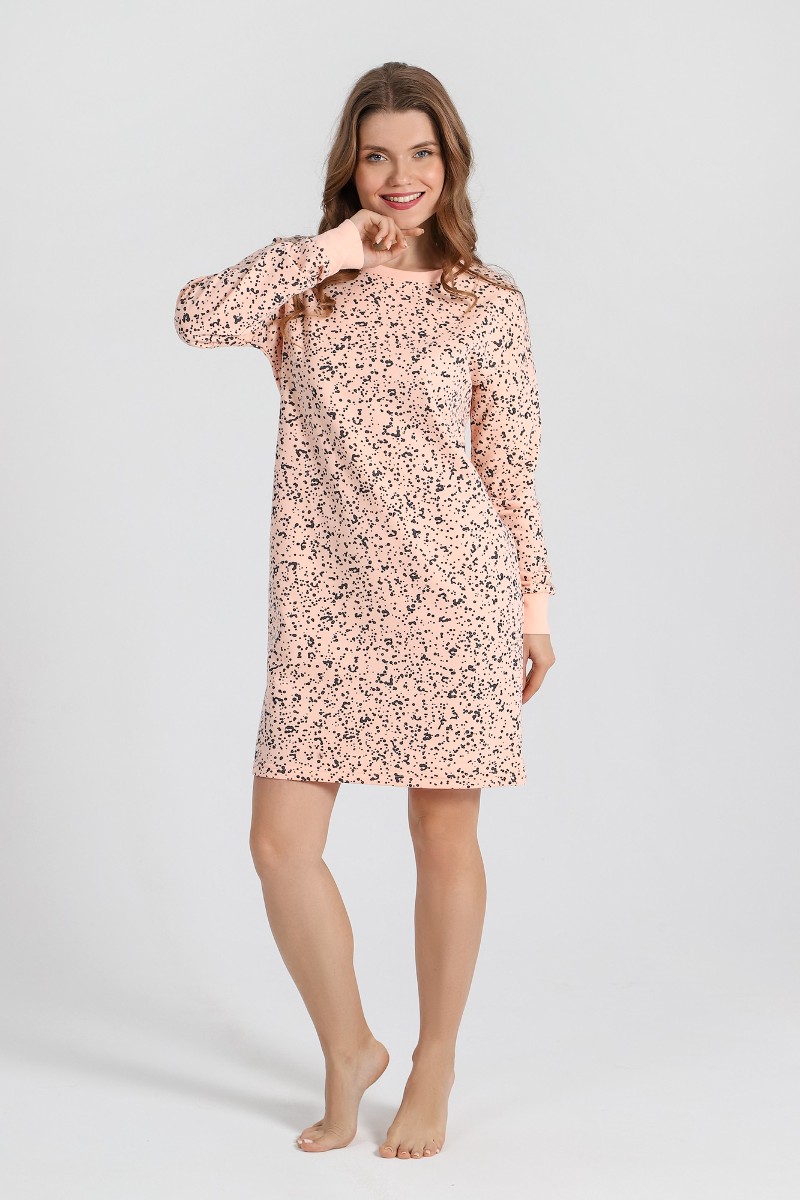 Сорочка женская "Россыпь-1" футер 2-х нитка с начесом (последний размер) персиковый 44