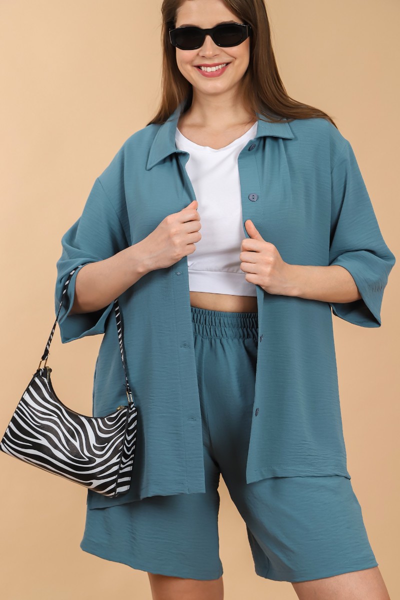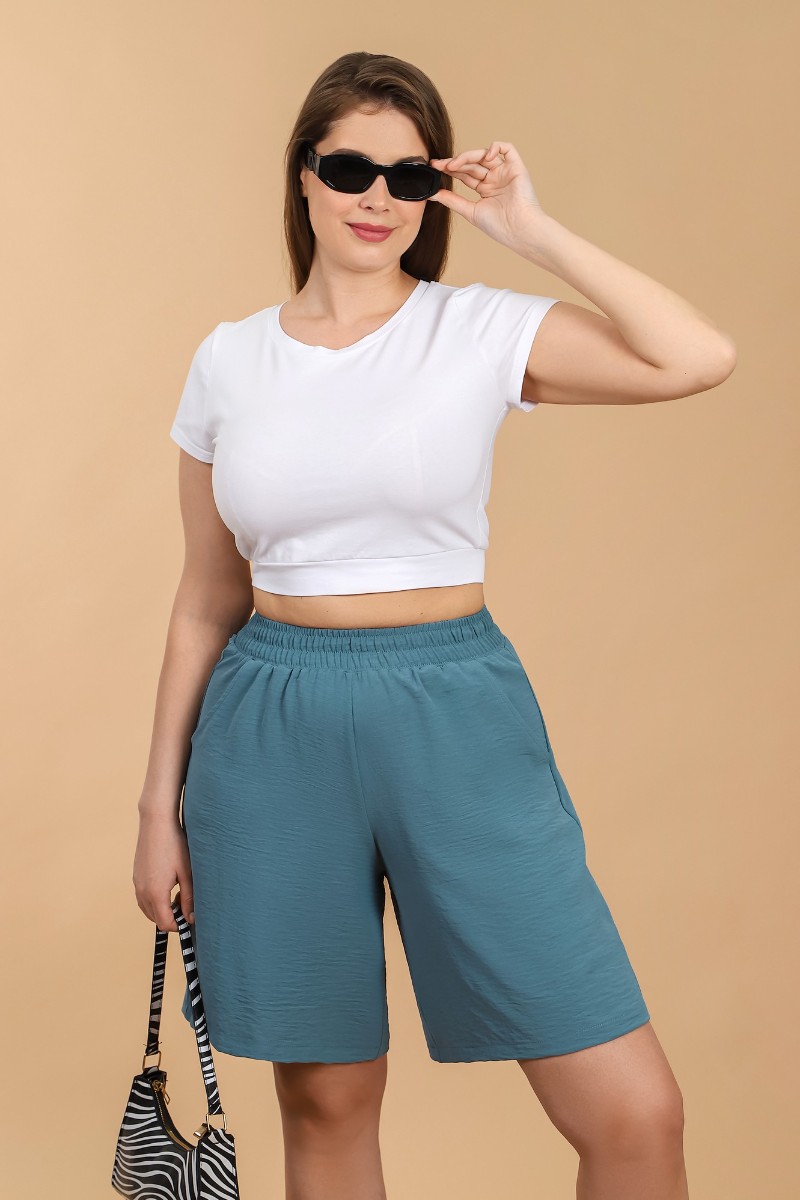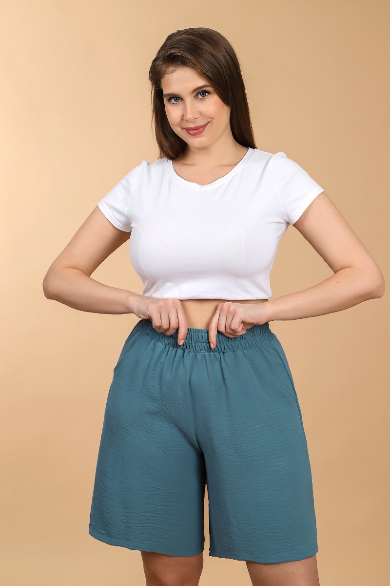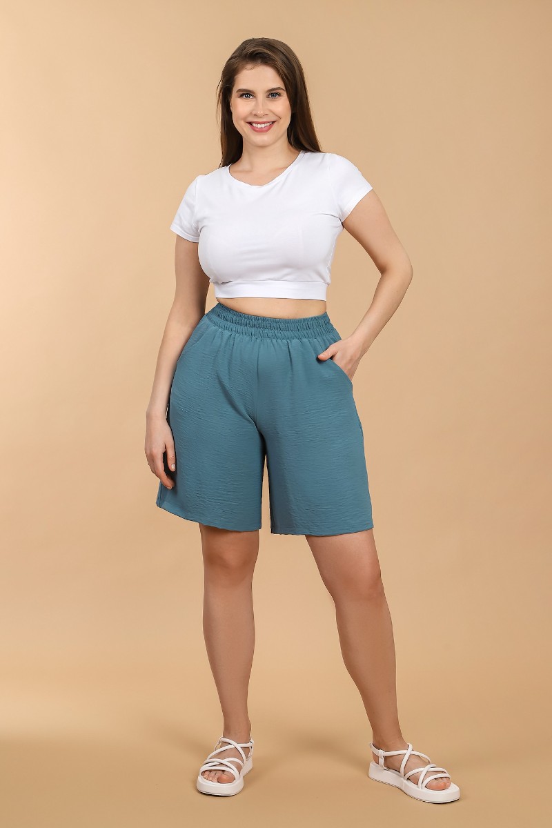 Шорты женские "Жаркий сезон-2" лён манго (последний размер) петроль 50