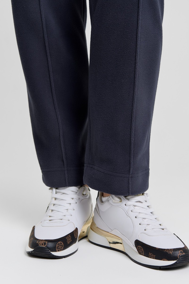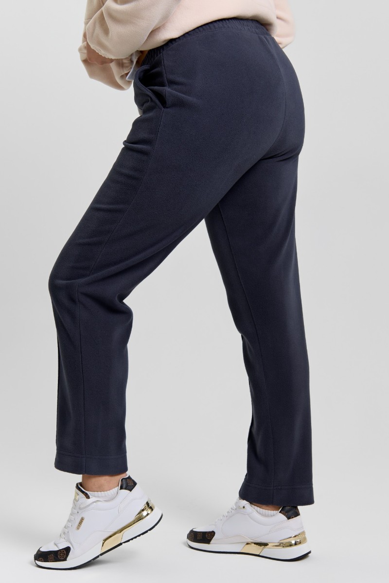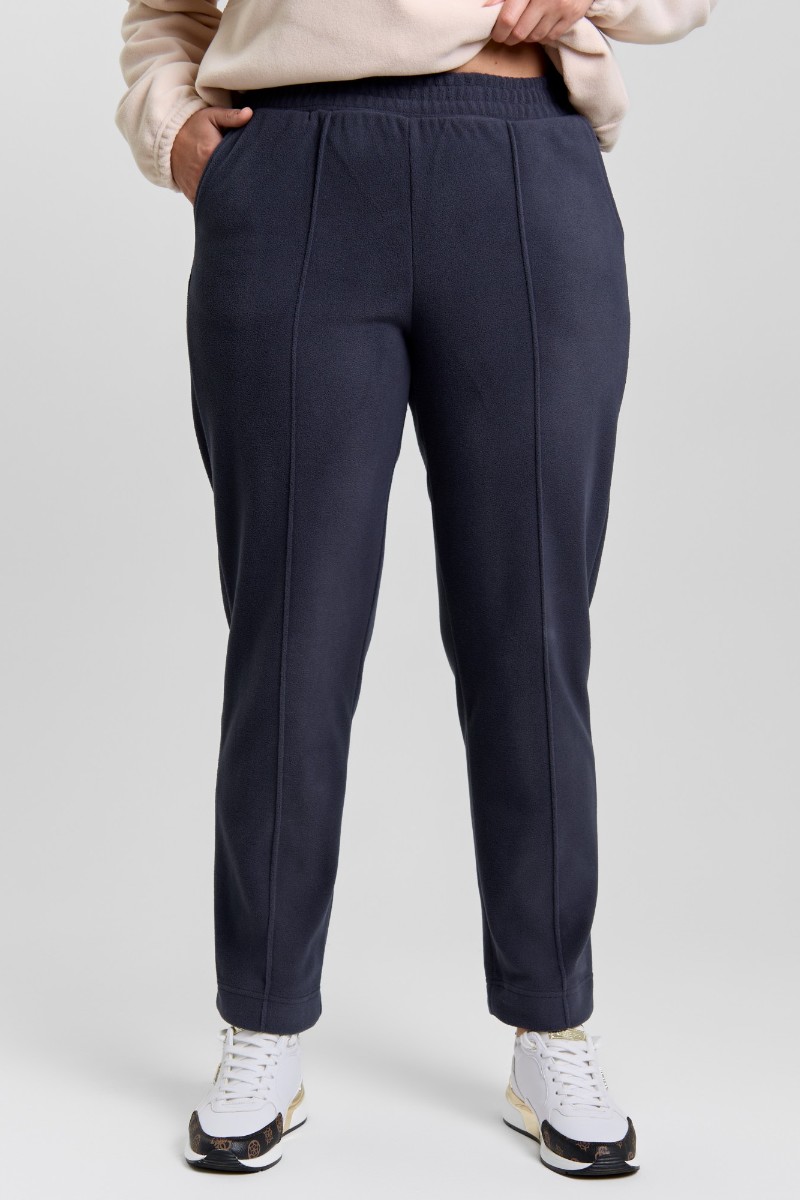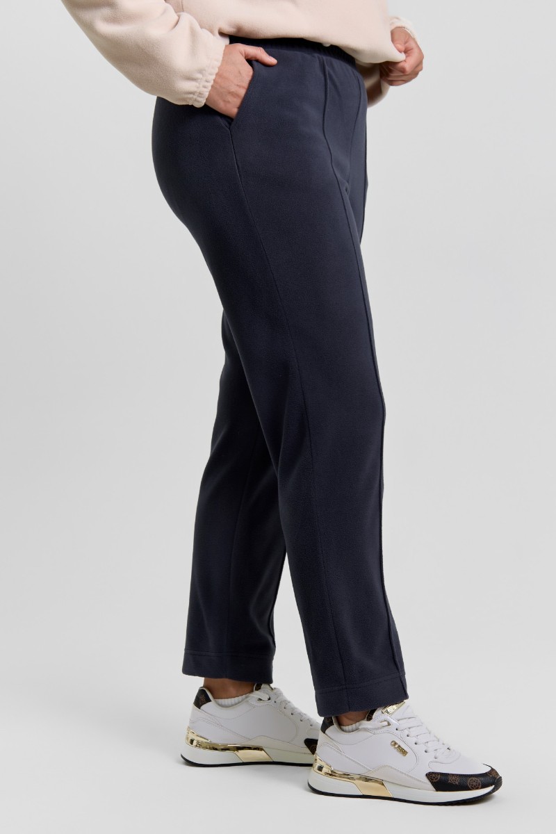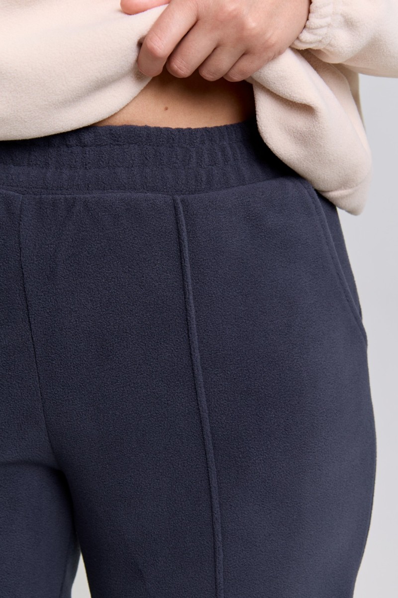 Представляем Вашему вниманию брюки женские из гладкокрашенного трикотажного полотна «флис», длинные, полуприлегающего силуэта, на притачном поясе с эластичной тесьмой внутри и карманами в боковых швах. Передние половины застрочены по центральным линиям, низ обработан широкой подгибкой.