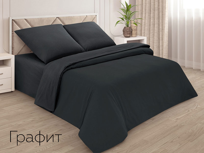 Пододеяльник классический поплин однотонный графит