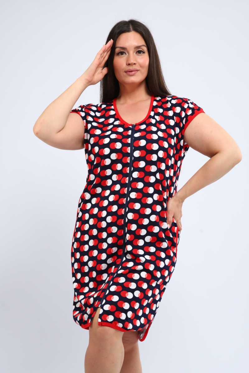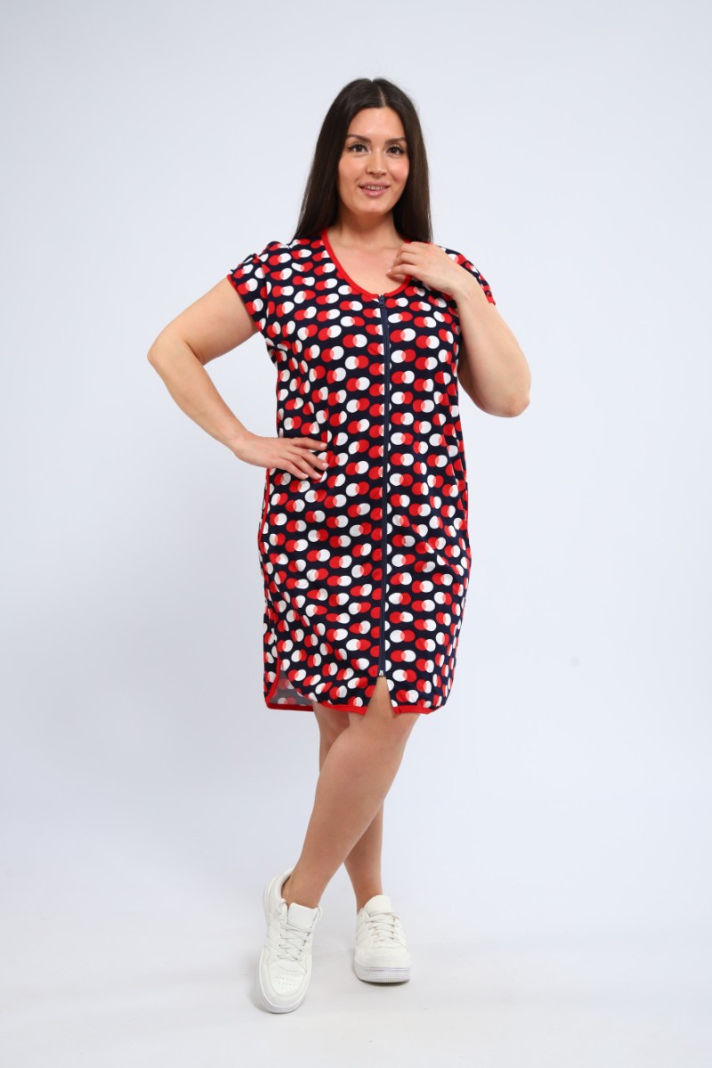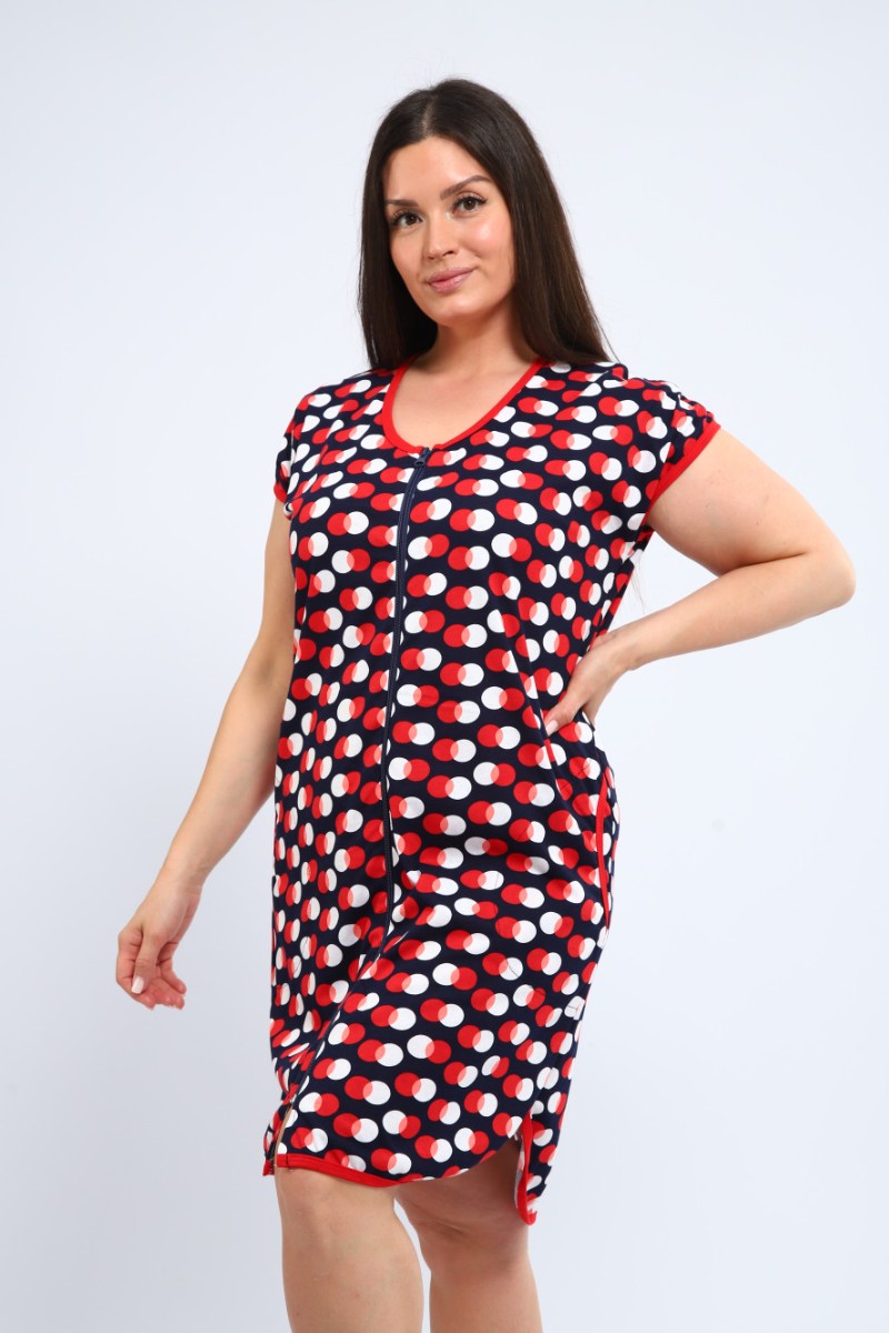 Халат женский Х-00377 кулирка (р-ры: 46-60) темно-синий-красный