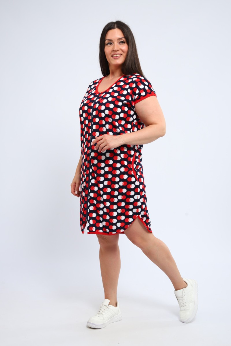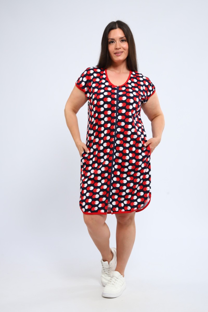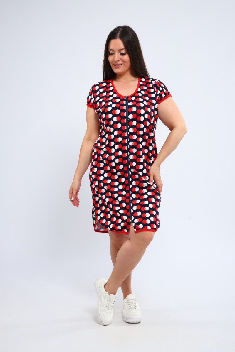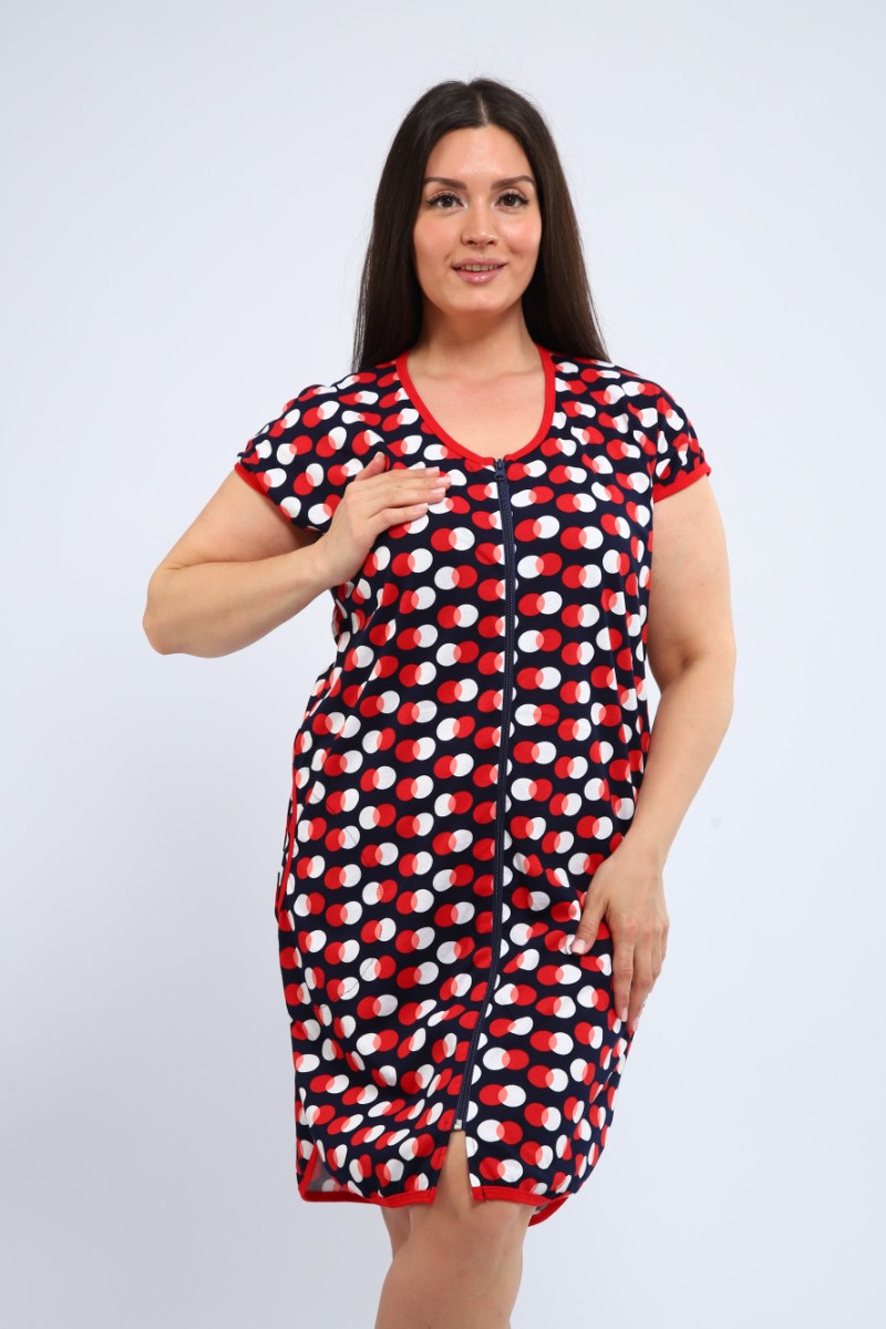 Халат женский Х-00377 кулирка (р-ры: 46-60) темно-синий-красный