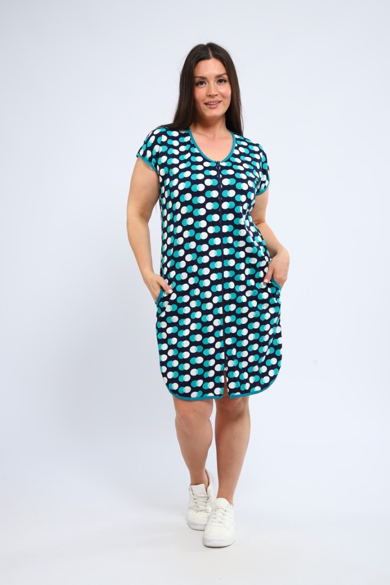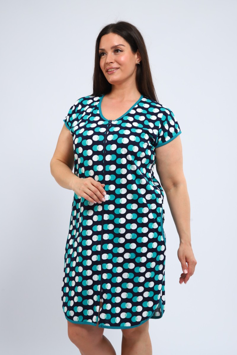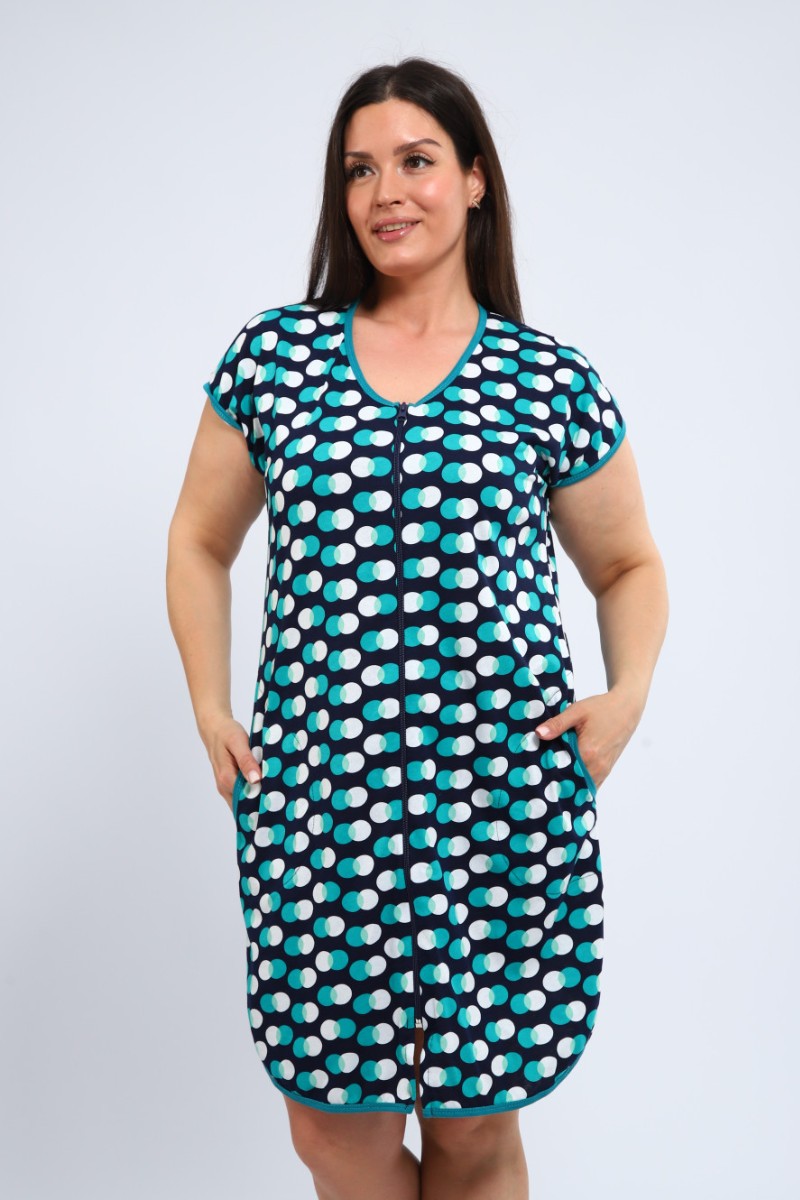 Халат женский Х-00377 кулирка (р-ры: 46-60) темно-синий-изумрудный