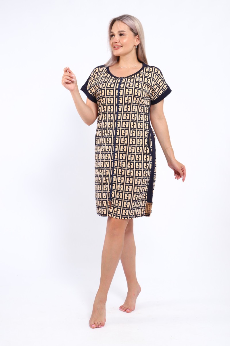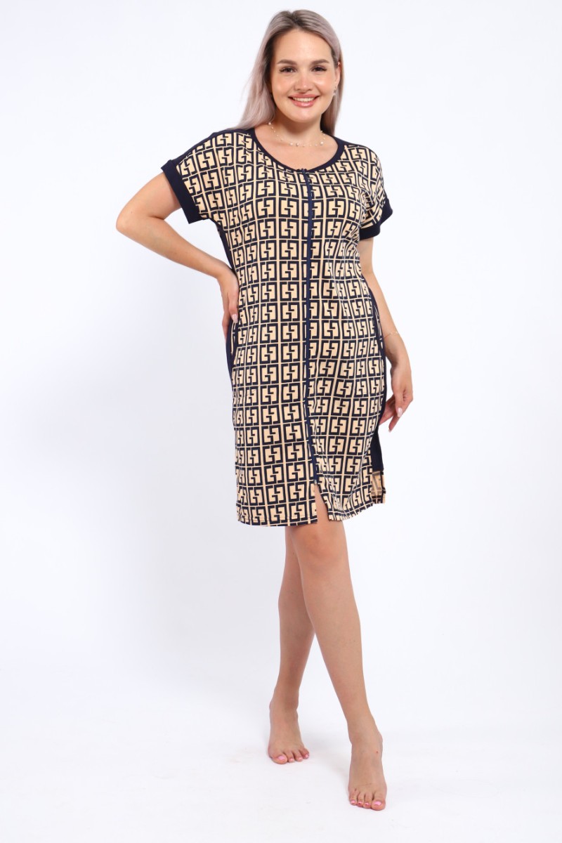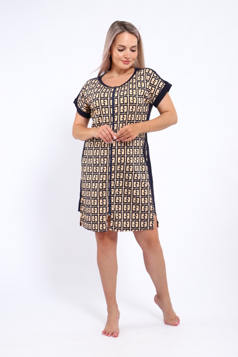 Халат женский Х-00377 кулирка (р-ры: 46-60) песочный-темно-синий