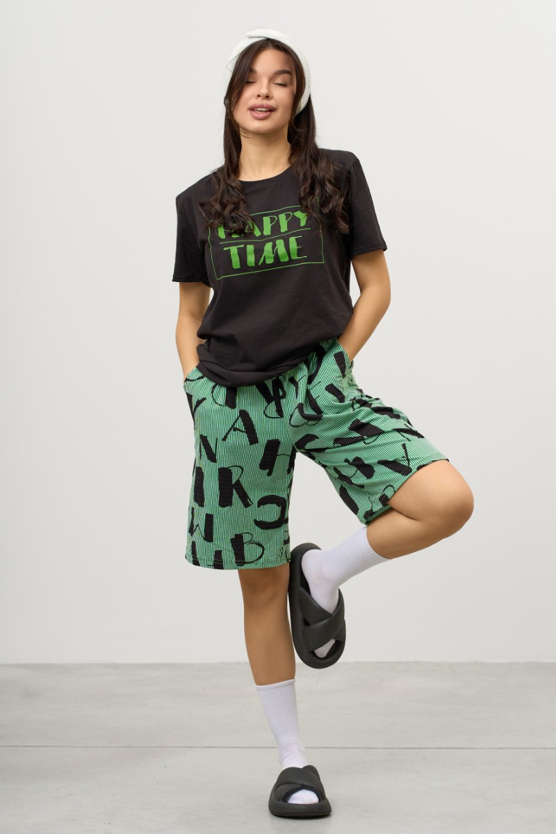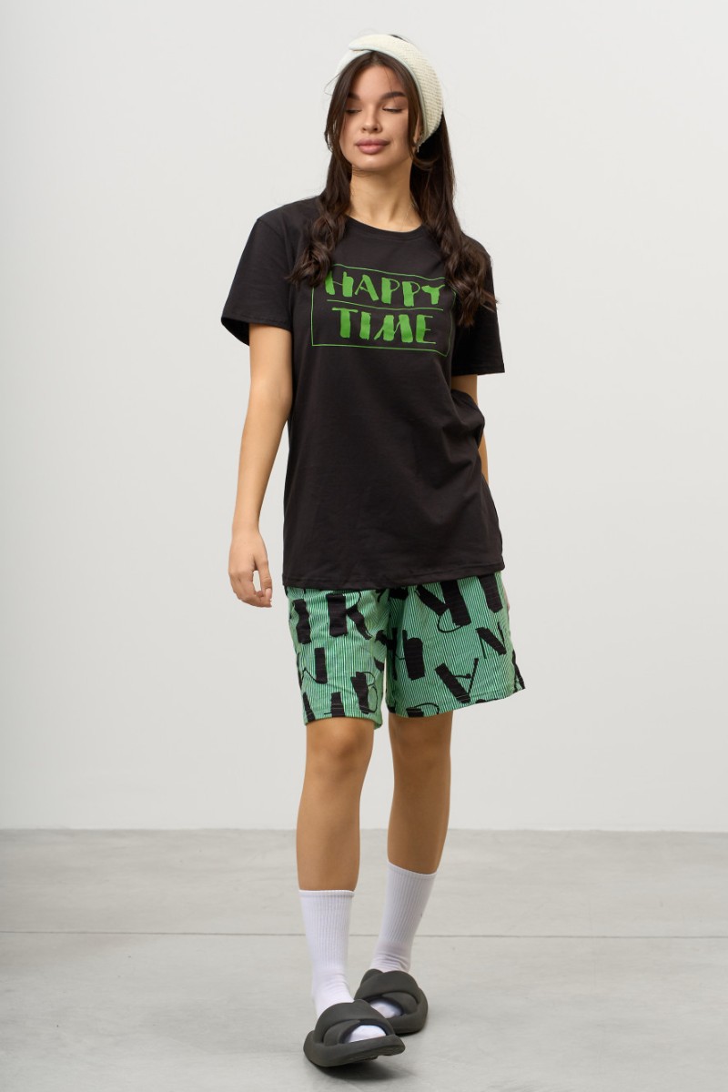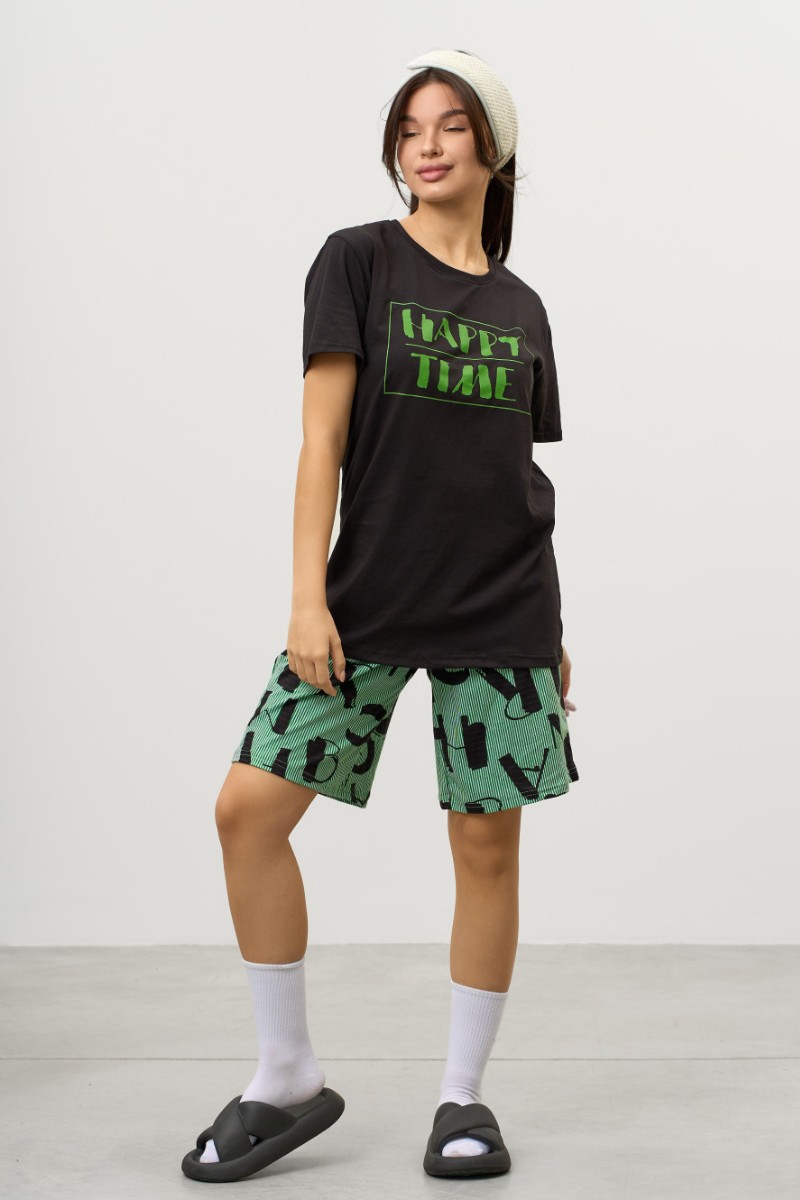 Костюм двойка женский КД-00453 кулирка (р-ры: 42-60) черный-зеленый