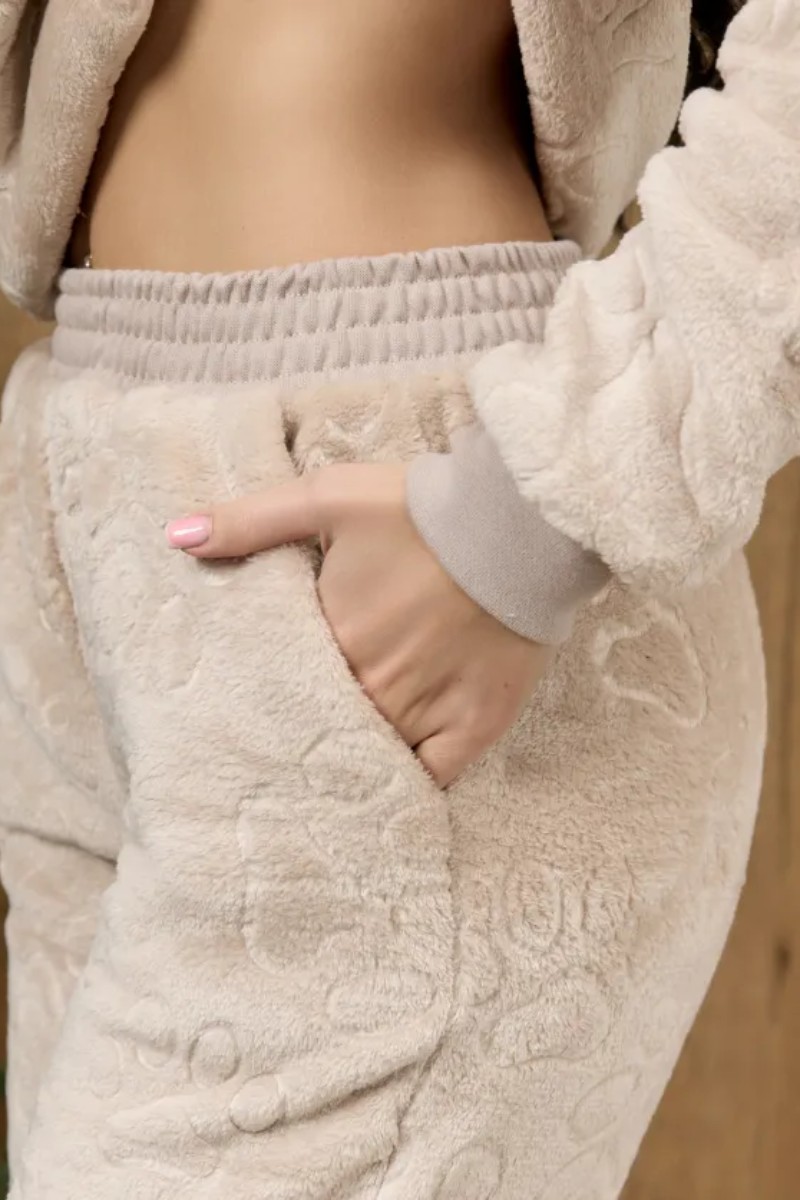 Домашний костюм легко сочетать с разными элементами одежды благодаря универсальному дизайну. Он идеален для отдыха дома, прогулок по квартире или новогодних праздников — мягкость ткани дарит ощущение заботы и нежности. Подростковый стиль делает образ модным, а теплые штаны сохраняют тепло на протяжении всей ночи.