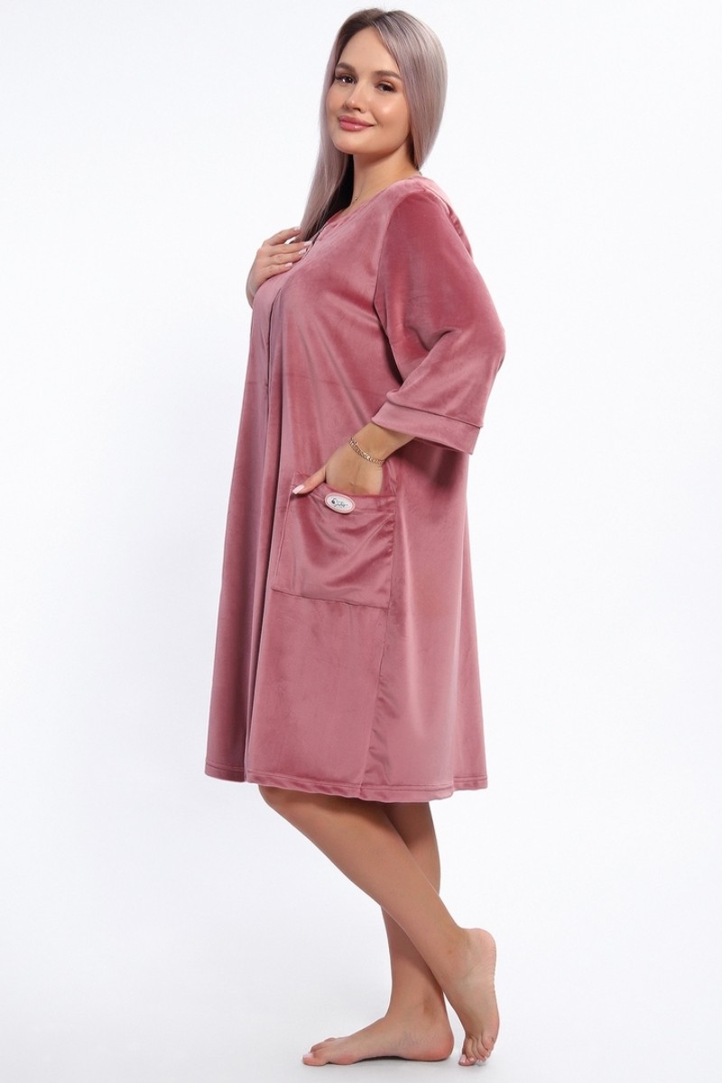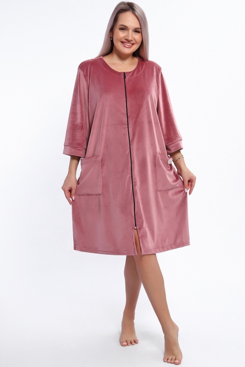 Халат женский 516 "Someday" велюр стрейч (р-ры: 50-60) сухая роза