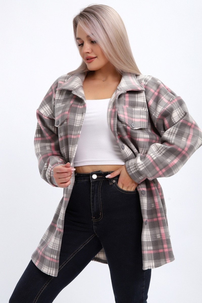 Туника женская 885 флис (р-ры: 48-58) серо-розовый