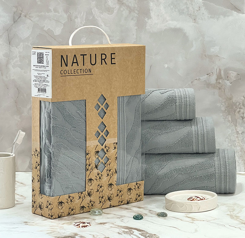 Набор махровых полотенец " Сафари" 08-179 серый в подарочной коробке