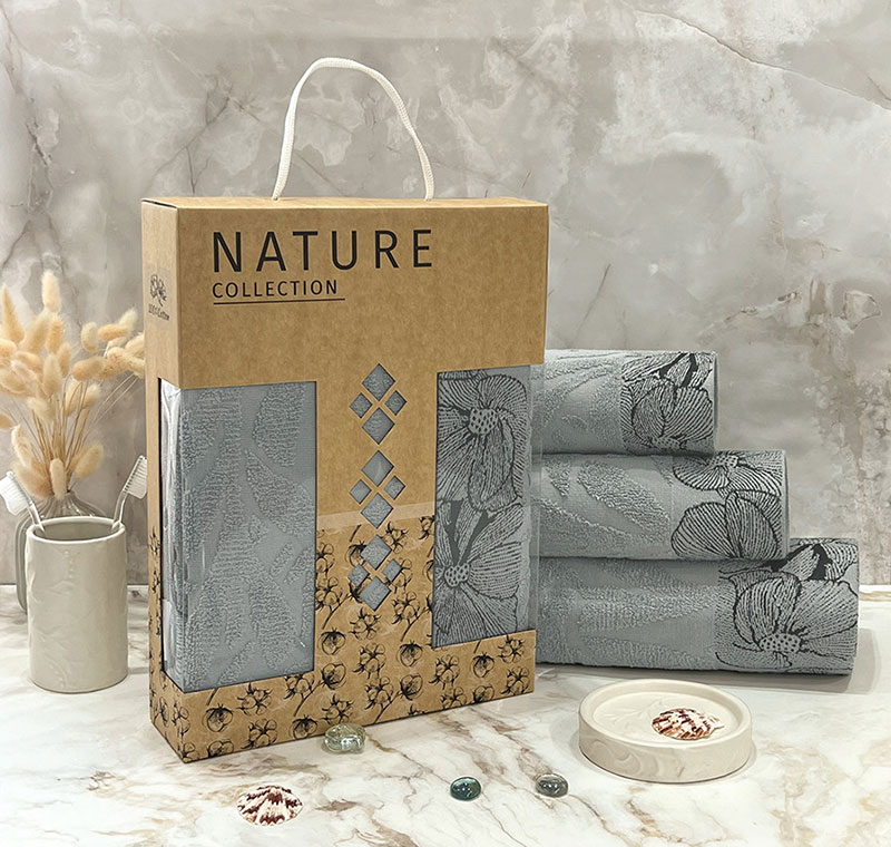 Набор махровых полотенец "Фиалка" 08-179 серый в подарочной коробке