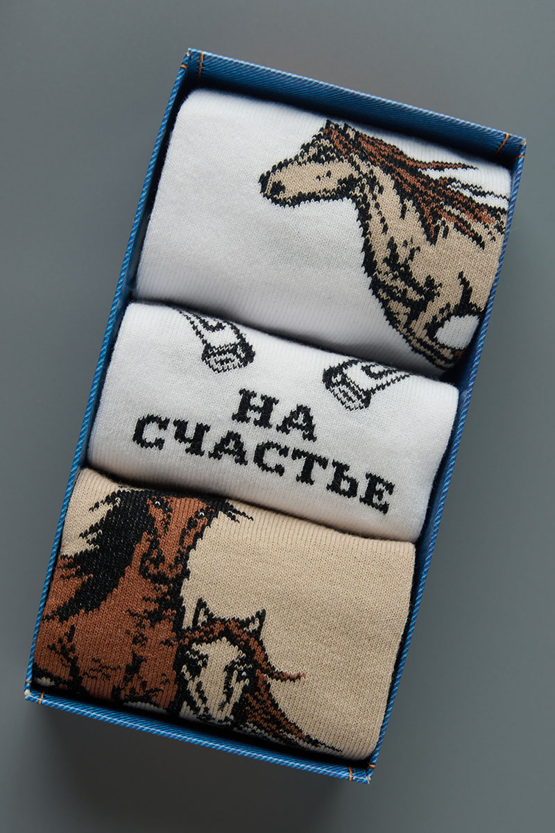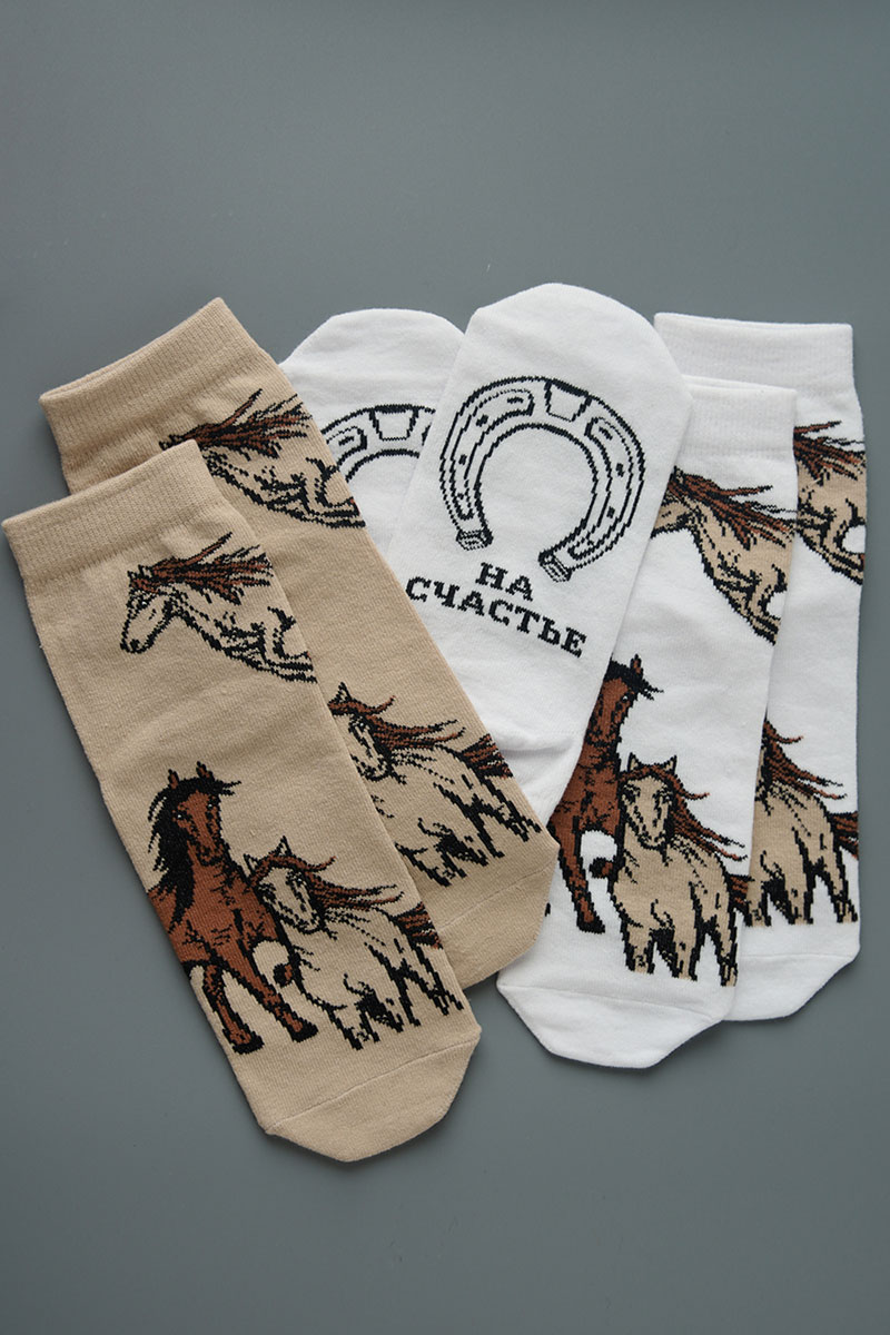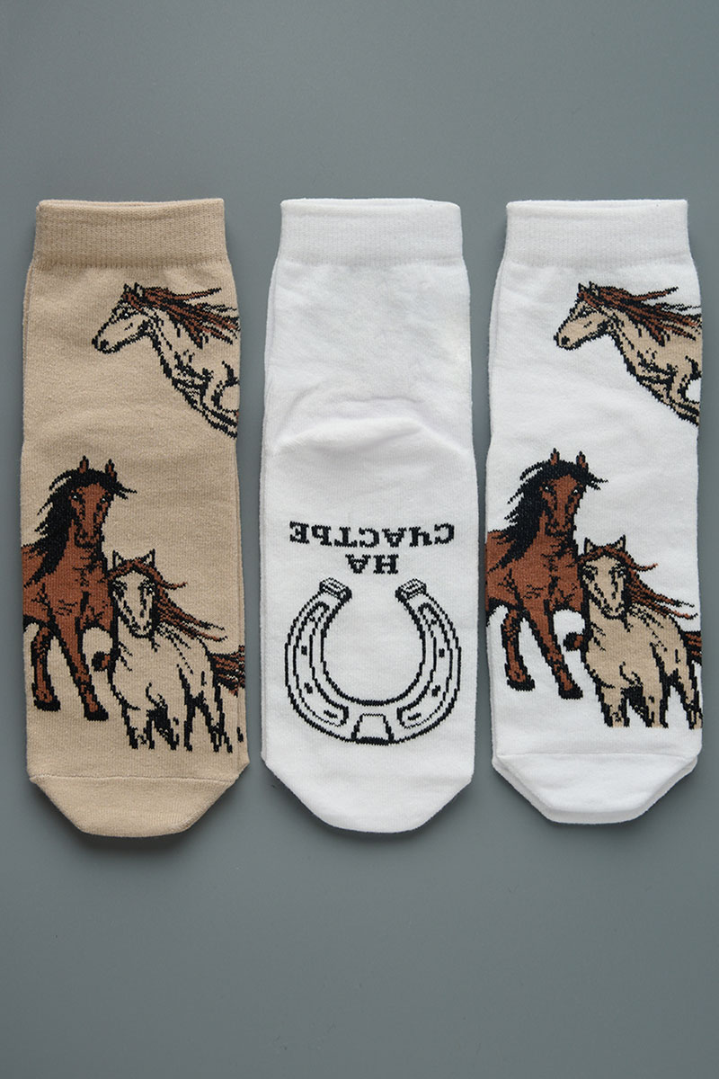 Носки женские "Лошадки" - 3 пары в подарочной коробке