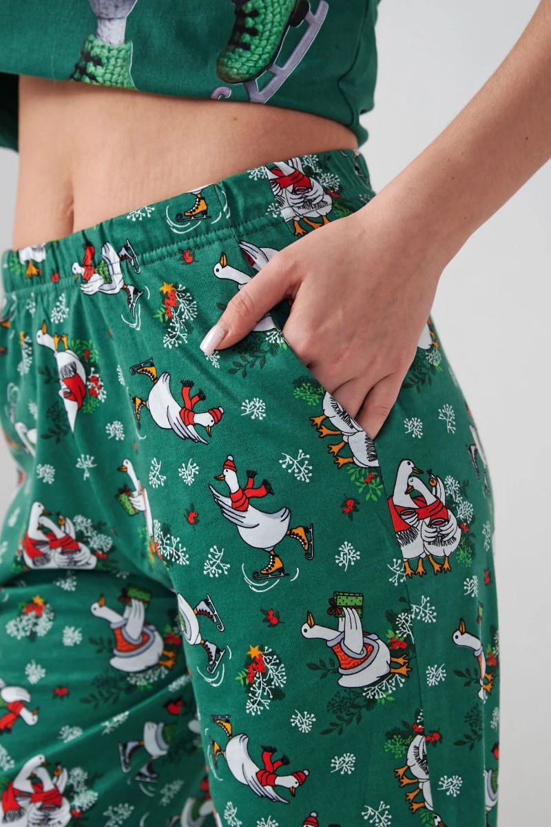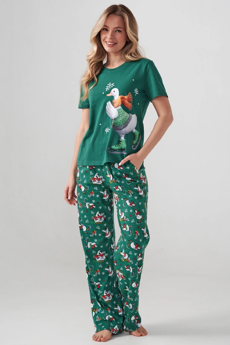 Пижама женская "Зимние забавы" 2411-К кулирка (р-ры: 46-56) зеленый