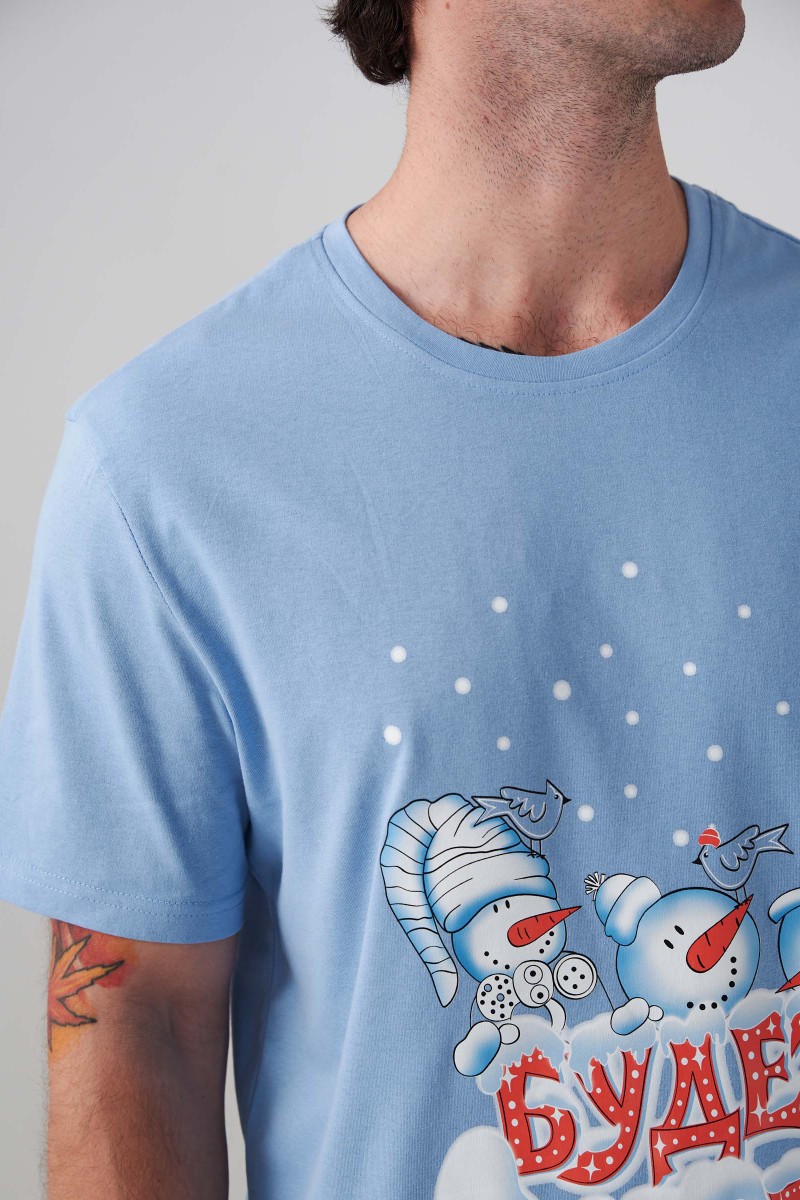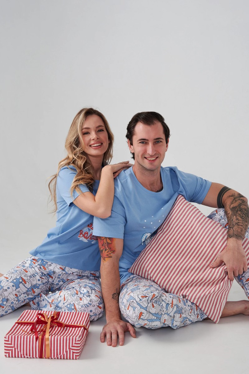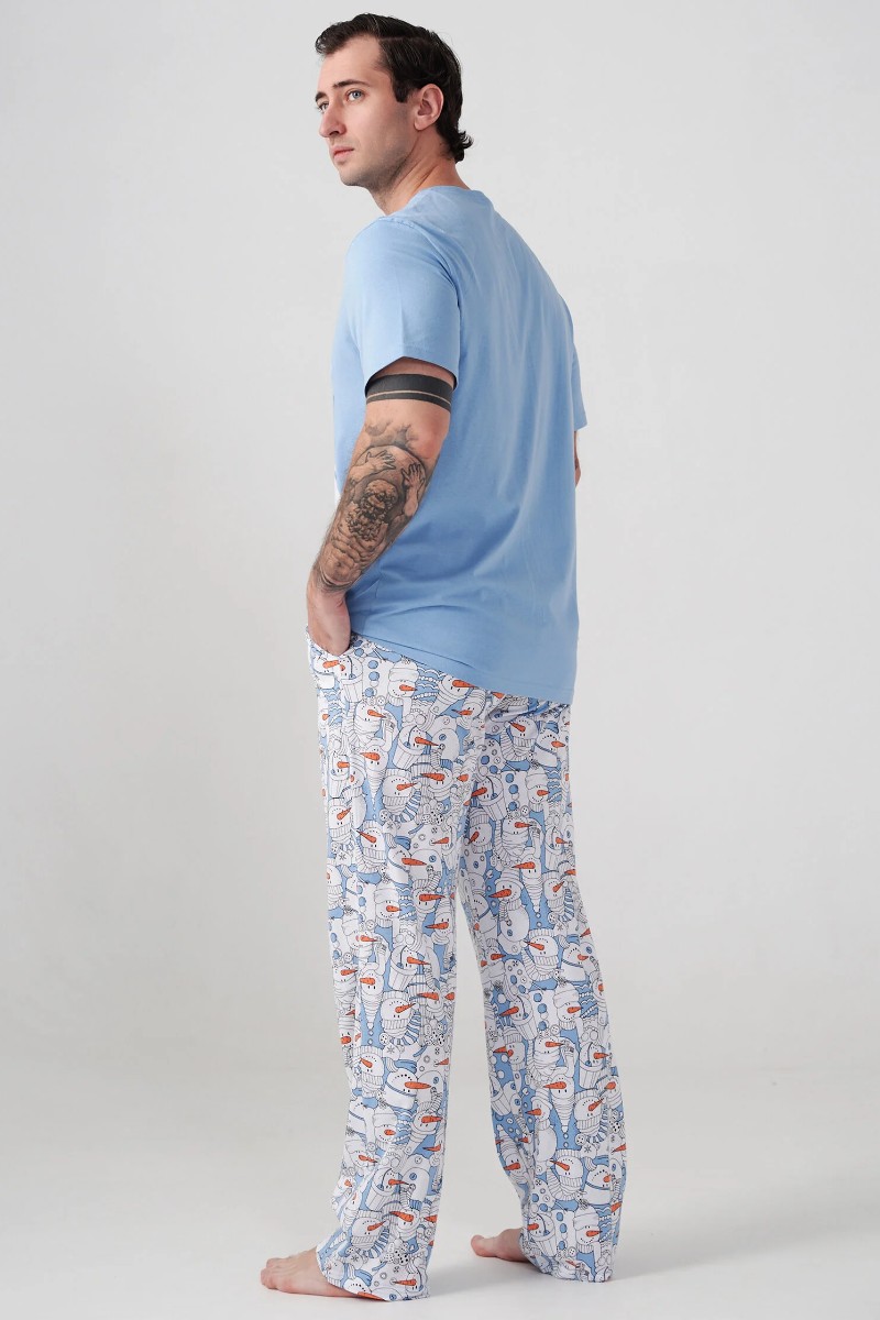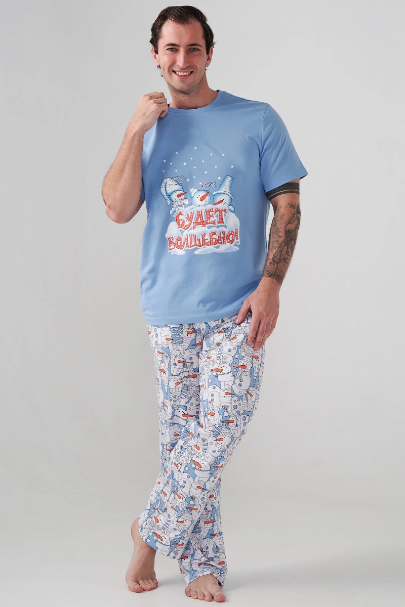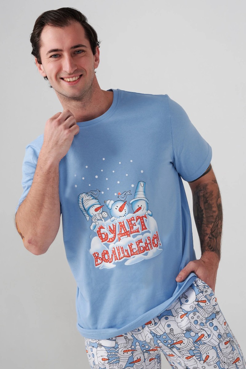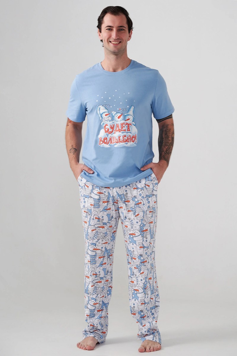 Пижама мужская "Снеговик" 2413-К кулирка (р-ры: 48-58) голубой