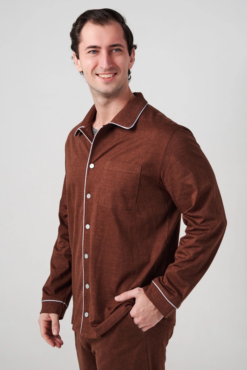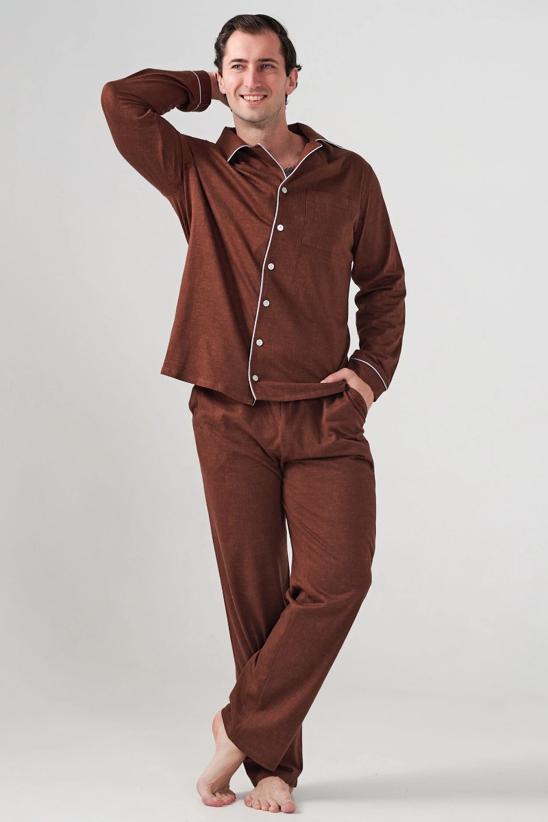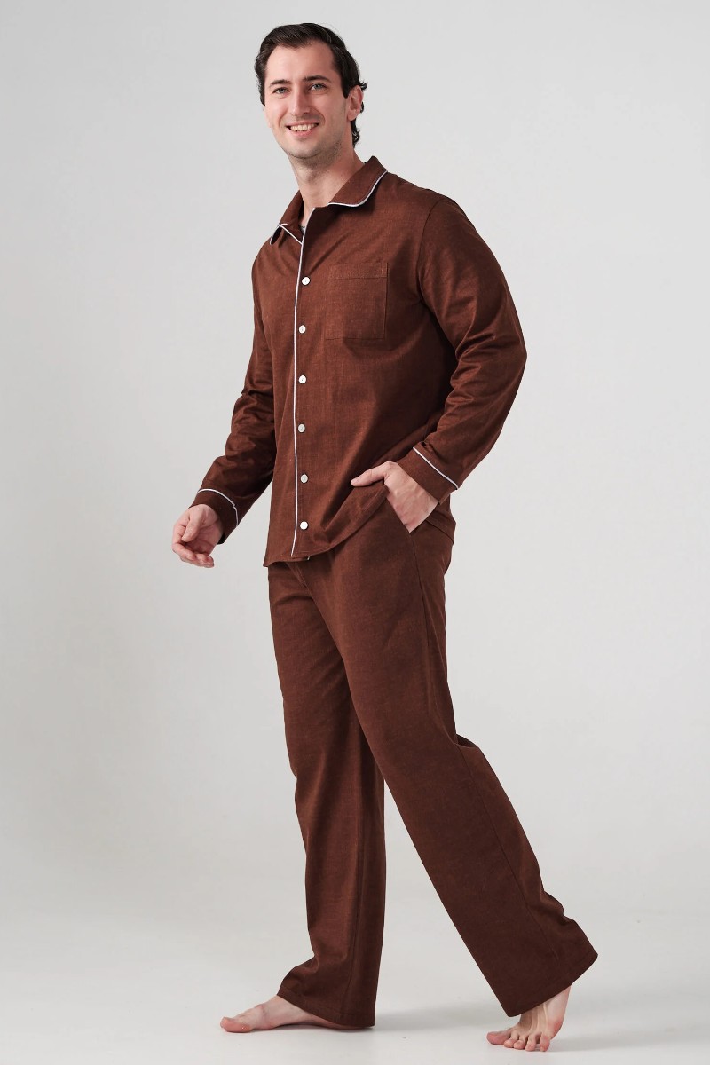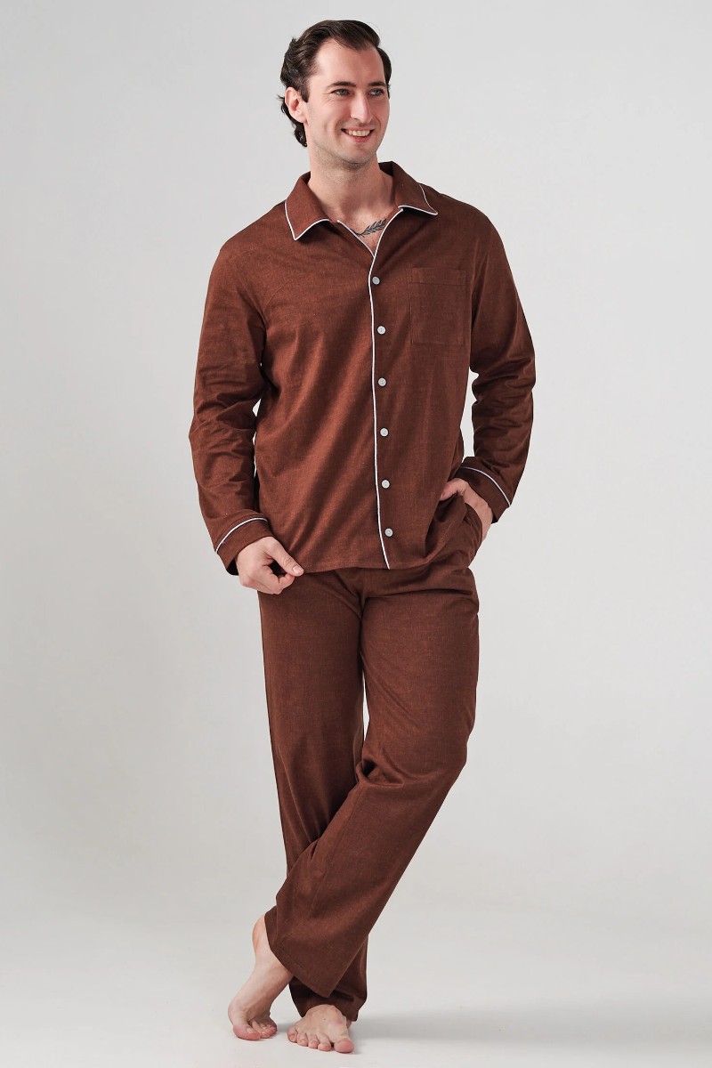 Пижама мужская "Лён" 2417-К кулирка (р-ры: 48-58) коричневый