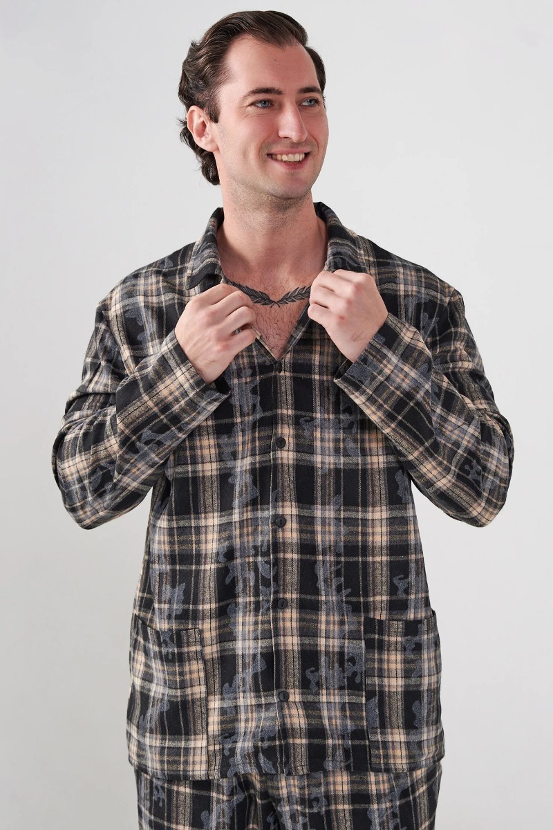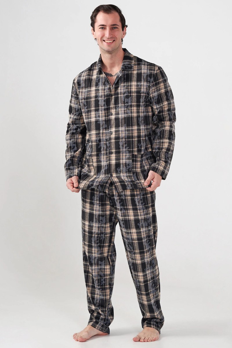 Пижама мужская "Добрый вечер" 2162-Ф фланель (р-ры: 48-58) черный