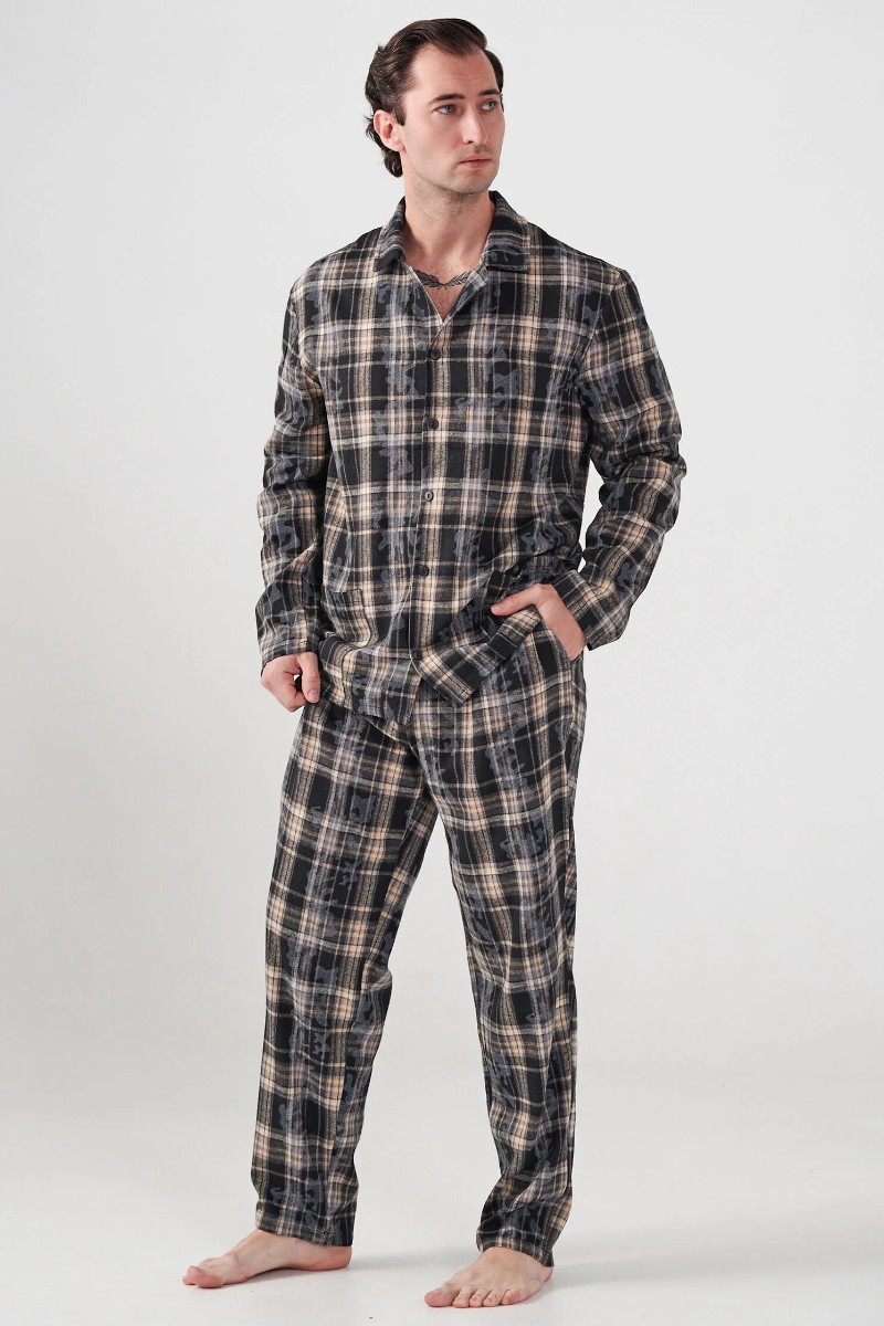 Представляем Вашему вниманию уютную мужскую пижаму из мягкой, приятной телу фланели. Комплект имеет интересную расцветку, которая красиво смотрится и поднимает настроение. Пижама хорошо сидит на фигуре и подчеркивает её достоинства. Сон в ней будет максимально комфортным и расслабляющим.